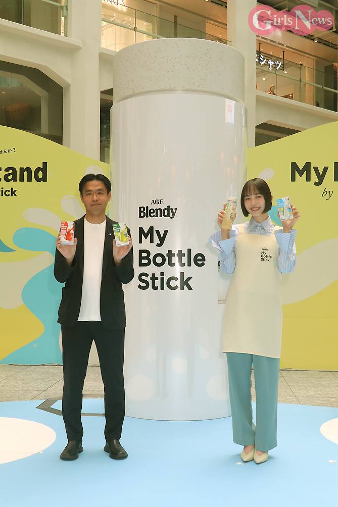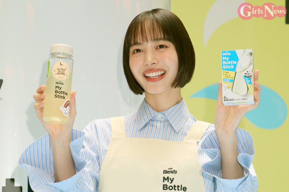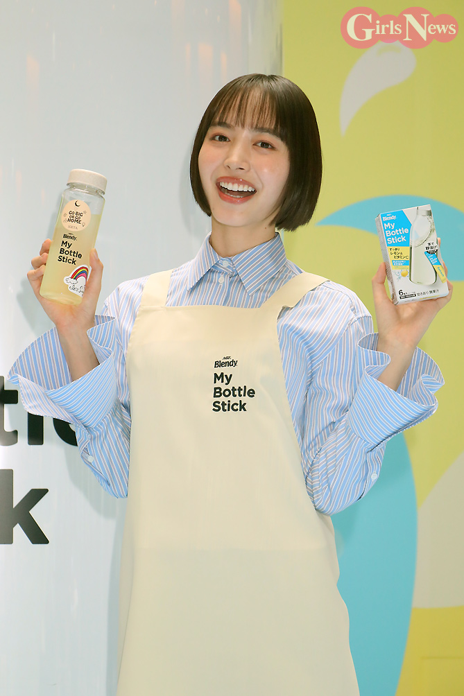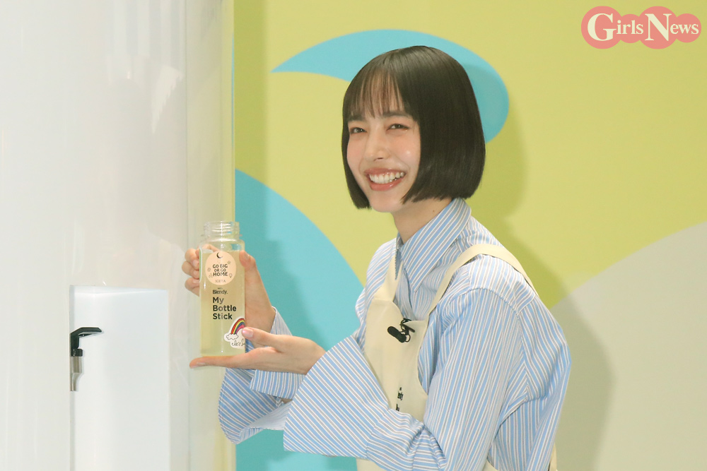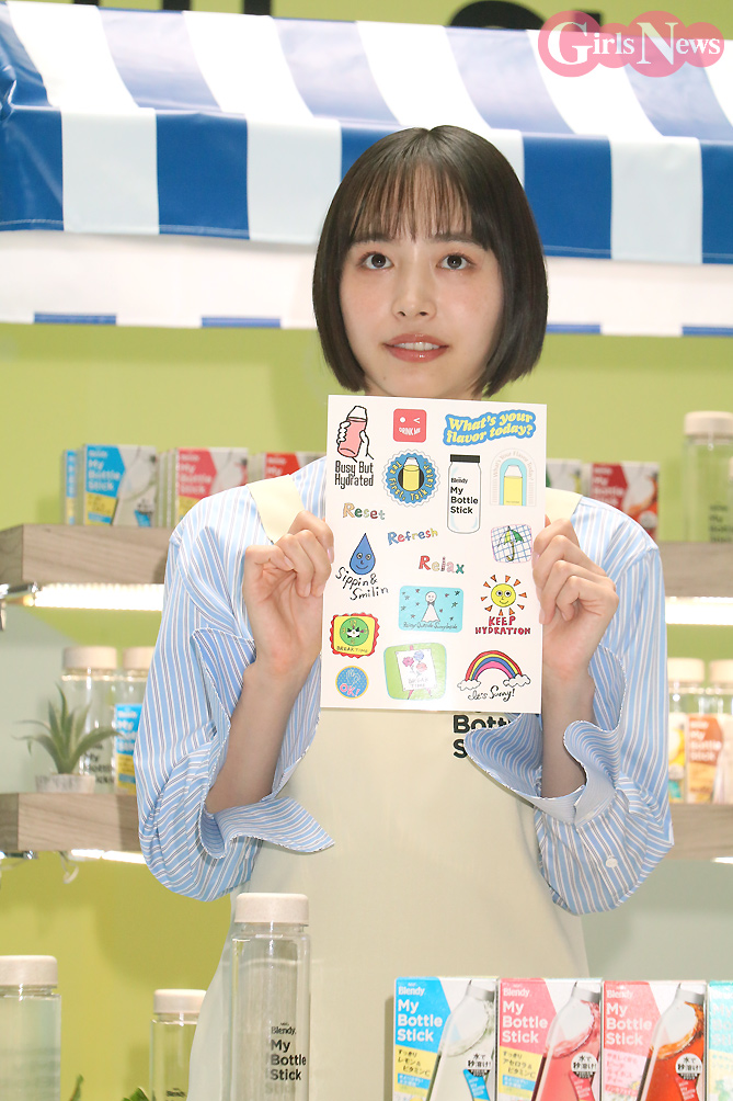 ブースに登場した約3メートルの巨大マイボトルで初給水を体験し、「レモンアンドビタミンC」のスティックをマイボトルに入れ、「色が変わった!」と興奮。飲んだ感想を「レモンの甘さがちょうどよくて、スッキリ。体にしみ込む感覚で、疲れた時にエネルギーになるなと思います」と述べ、美味しそうな表情で会場を魅了。司会者から「美味しそうな顔が特技」と振られると、「恥ずかしいです!」と照れつつ、「ほんとに美味しいです」と絶賛した。
