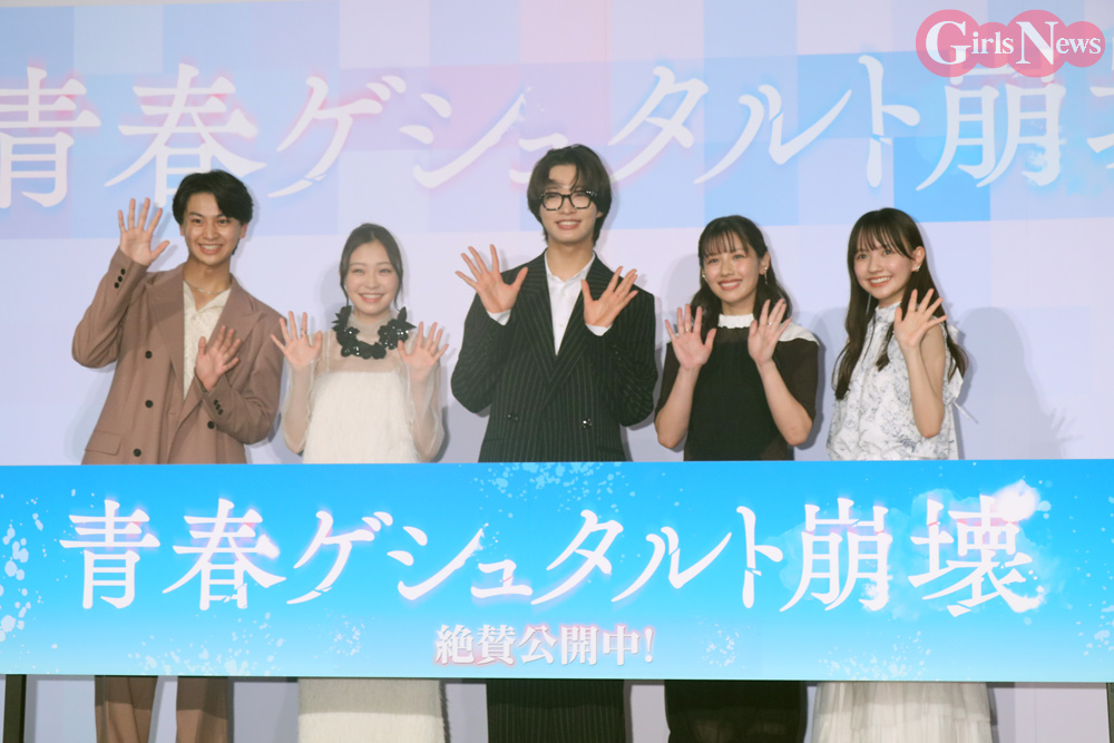 日向坂46の元メンバーで女優の渡邉美穂が13日、TOHOシネマズ新宿で開催された映画『青春ゲシュタルト崩壊』の初日舞台挨拶に登壇した。W主演を務めるIMP.の佐藤新をはじめ、新井美羽、藤本洸大、河村ここあとフレッシュなキャストが集結し、公開初日を迎えた喜びや撮影の裏話を語った。