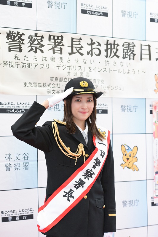 女優の井頭愛海さんが25日、警察庁 碑文谷警察署の一日警察署長をつとめた。