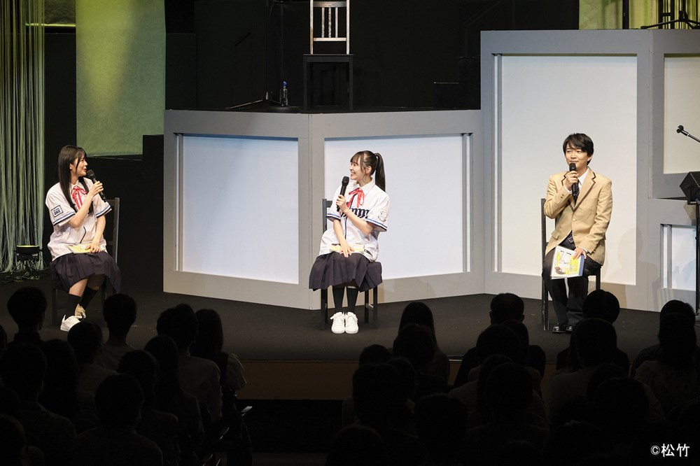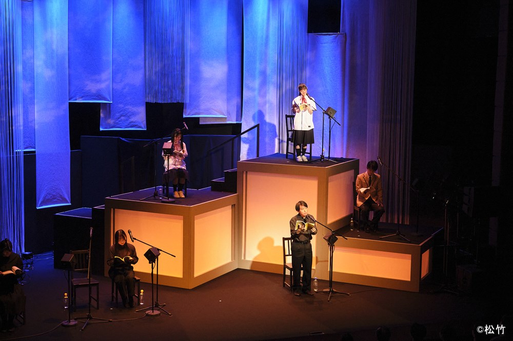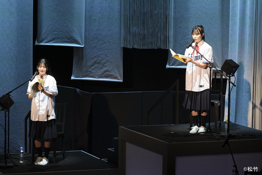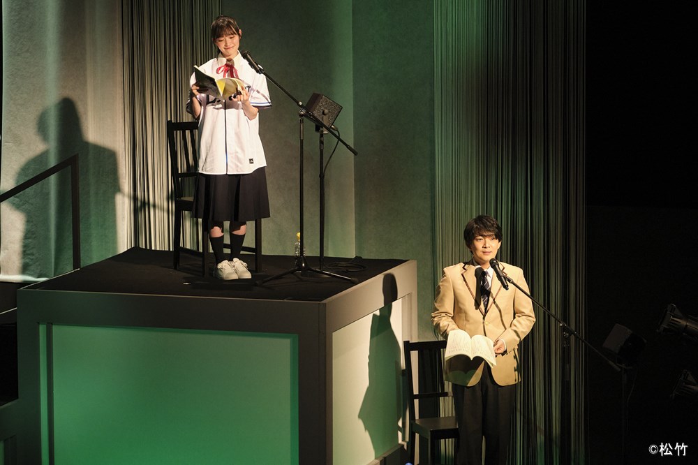 その物語が朗読劇として上演。人気と実力を兼ね備える声優たちによる日替わりキャスト制で、毎公演ごとに異なる表情を楽しめる。この日上演した回では、成瀬あかり役を岩田陽葵が、島崎みゆき役を紡木吏佐が、西浦航一郎役を梅田修一朗が担当した。