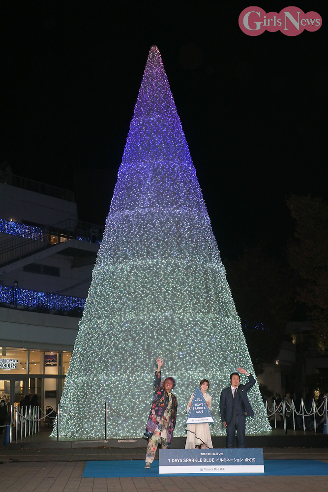 今年のイルミネーションは「湘南の青い海、蒼い空 7DAYS SPARKLE BLUE」がテーマ。テラスモール湘南の愛澤秀之社長所長は、「湘南の空をイメージしたLED約25万球、高さ15メートルの巨大なツリーです。7日間毎日色が変化していきますので、ぜひ毎日お越しいただいて、違う色のツリーを楽しんでいただければ」と説明した。期間は本日より来年2月15日まで毎日楽しめる。