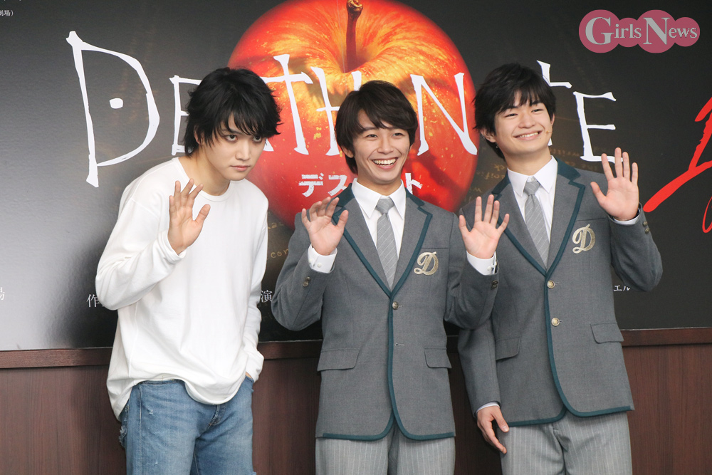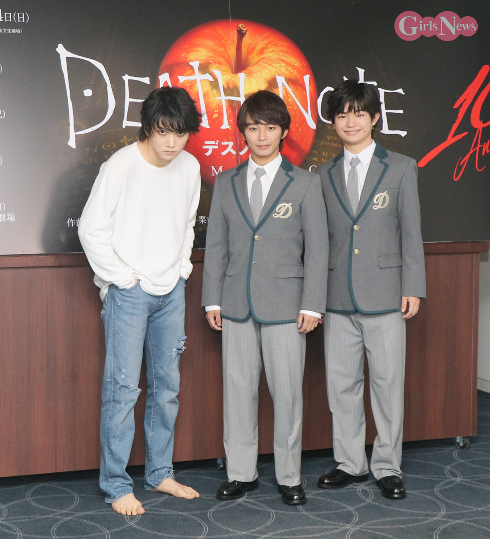 開幕を翌日に控えた23日には、夜神月役の加藤清史郎、渡邉蒼、そしてL役の三浦宏規による囲み取材が行われ、作品に込めた深いメッセージを語った。