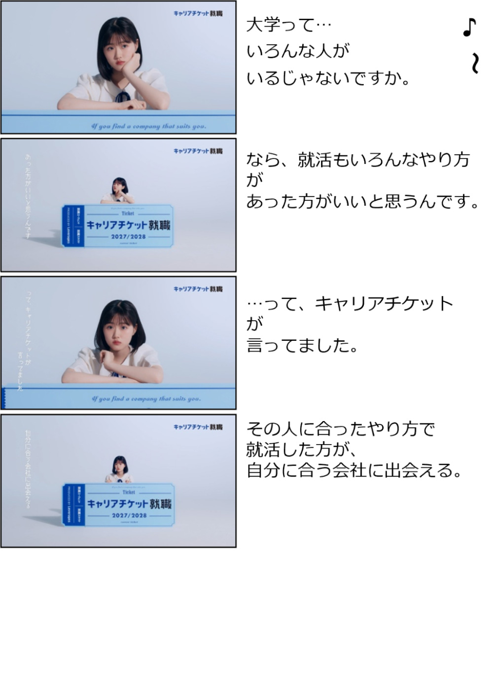 女優の原菜乃華が、新卒学生向け就職支援サービス「キャリアチケット就職」の新CMに出演し、12月21日より全国で放映を開始する。CMでは、原さんが就職活動に悩む若者の心情をユーモラスに表現し、オリジナルの替え歌を軽やかに歌い上げている。