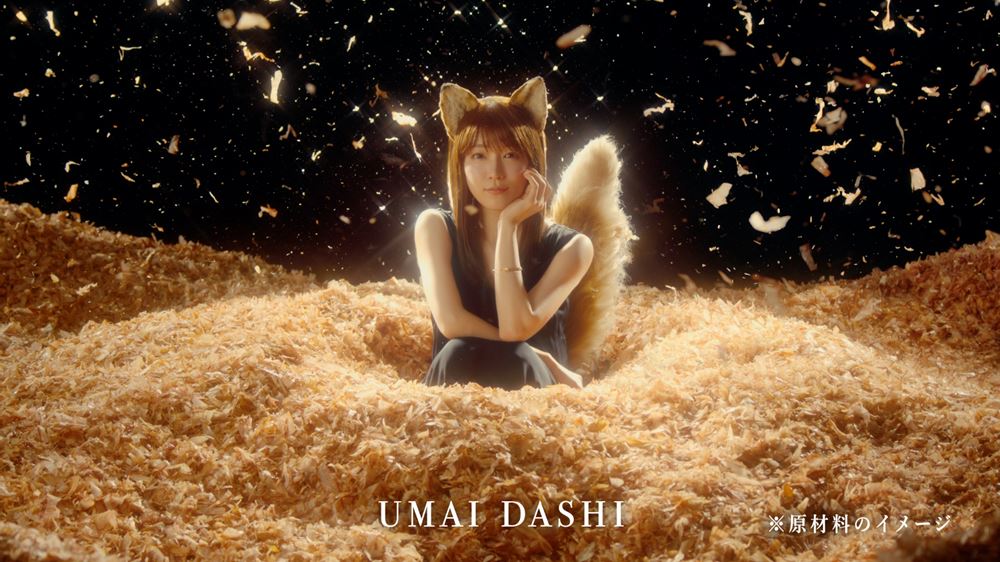 4年前の『さよなら、どんぎつね 篇』では白を基調とした愛らしいファッションとキュートなふるまいで視聴者の心を癒した吉岡さん。今回は黒いドレスを身にまとい、『どん兵衛』の“おだし”に欠かせない素材・鰹節に溺れながら、大人の魅力あふれるさまざまな表情を披露しており、4年前とはがらりと雰囲気が変わった大人っぽい“どんぎつね”が見どころだ。