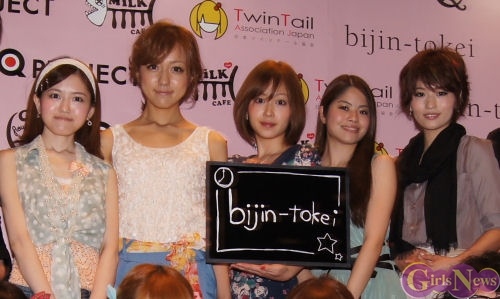 4月29日、ラフォーレ原宿で開催中のQ PROJECT PRESENTS『オーディション祭』の制作発表会見が行われ、美人時計の人気モデルや、日本ツインテール協会のツインテールモデルらが出席した。