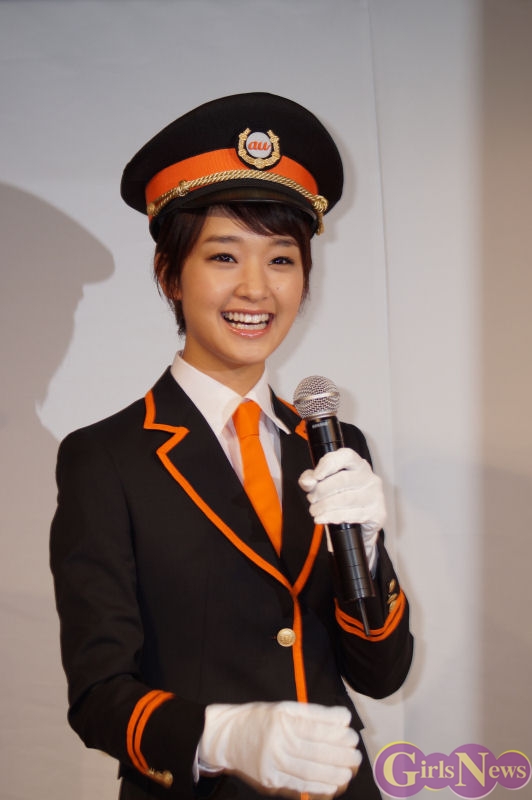 剛力彩芽さんは9月22日よりスタートするauの新CM au女子割「乗り換え案内」篇で着用しているauへの乗り換えをアナウンスする車掌のユニホームで登場。