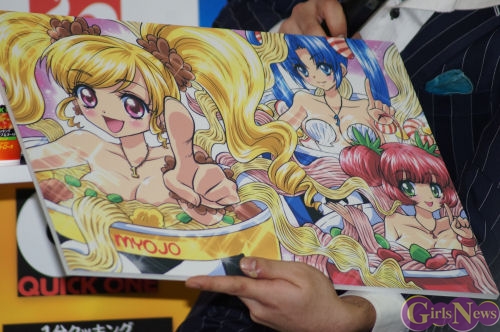 2月17日、1分で作ることができるスープ&ヌードル 明星Quick1の発売記念CM発表イベントが都内で行われ、CMキャラクターを務めるしょこたんの愛称で人気の中川翔子さんが出席した。