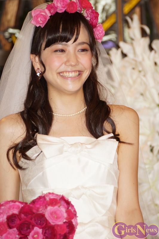 5月21日、結婚情報誌「ゼクシィ」の新CM発表会が都内で行われ、ゼクシィ6代目CMガールを務める女優の松井愛莉さんがウエディングドレス姿で登場した。