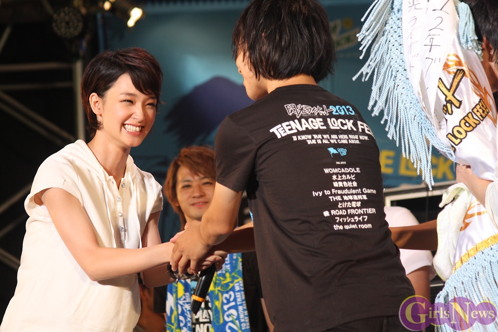 この日は、「閃光ライオット2013」ファイナルに勝ち残った9組が出場し、全国から集った観客と剛力彩芽さんらが見守る中で熱いライブを繰り広げ、6時間に渡る熱戦の末、授賞式で賞品の目録を受け取った入賞者たちは、剛力彩芽さんとの握手という思わぬ副賞にひときわ顔をほころばせていた。