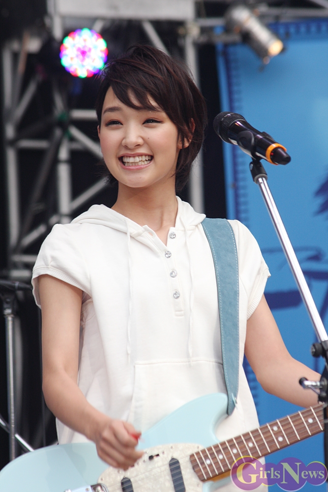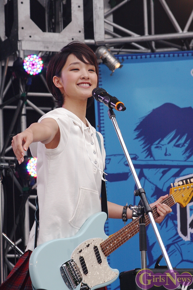 そして、ギターをジャーンとかき鳴らし会場へ向けてピックを投げ入れた。「もうちょっと遠くへ飛ばすつもりだったんですが。」と苦笑いする剛力彩芽さんだったが、開場は和やかな雰囲気に包まれた。