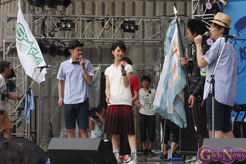 「閃光ライオット2013」の応援ガールの剛力彩芽さんは「野音のステージに初めて立ちましたよ。スゴイいっぱい!」と会場をぎっしりと埋め尽くす3000人の観客に眼を丸くした。