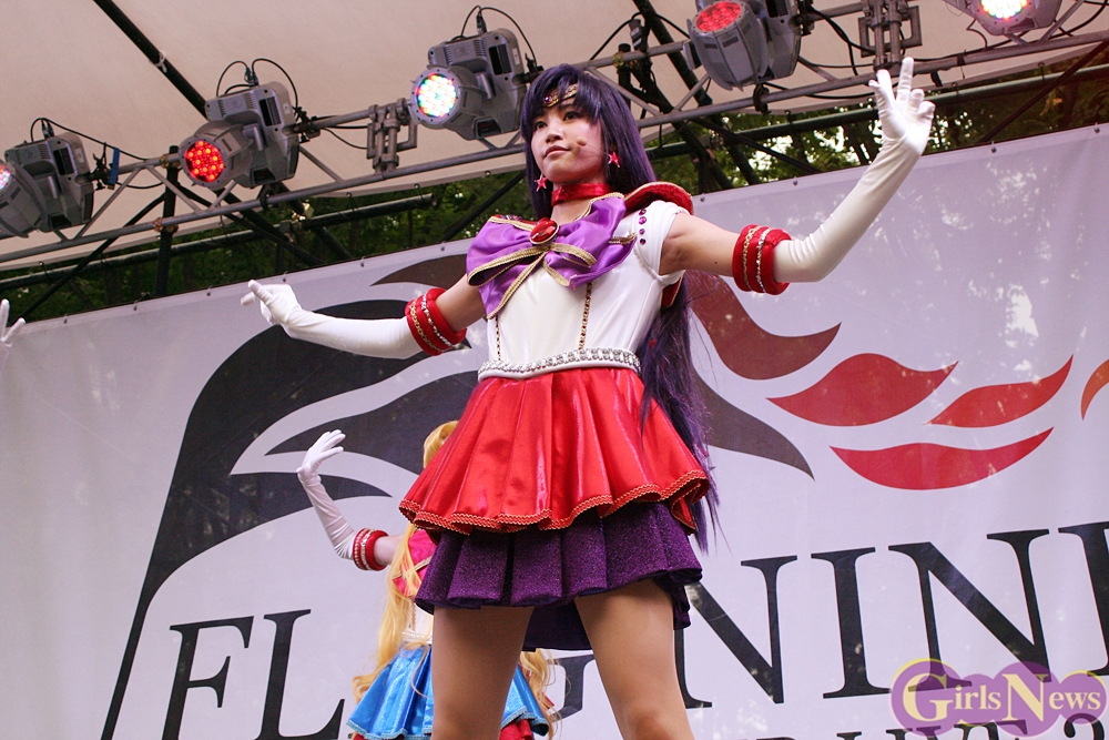 ミュージカルのセーラー戦士が5人揃って初めて公の場に姿を現すとあって、ステージの前には早くから訪れた熱心なファンが待ち構えた。