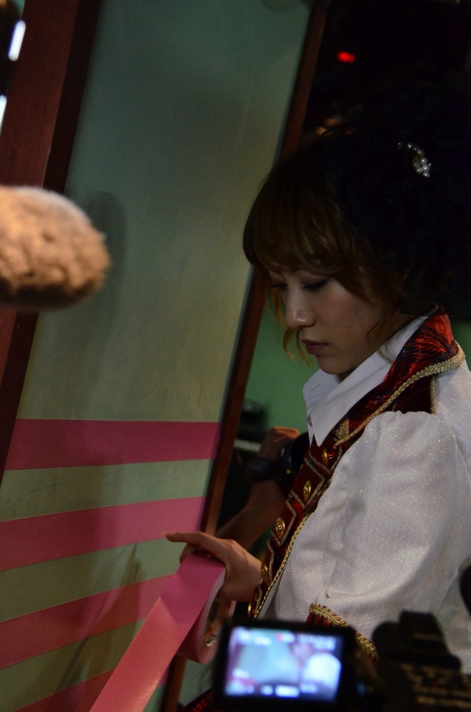 本日は「AKB48劇場8周年特別記念公演」にご参加いただきありがとうございます。ここ劇場は全てのメンバーのスタートの場所でもあり、卒業の時もここから巣立っていく大切な場所です。初心に戻れる大切にしなくてはいけない場所です。2本の柱にテープがまた1本新しく撒かれ、明日から9年目になります。メンバー・ファンの皆様・スタッフできれいな三角形を作っていけるよう、皆様にいい公演やサプライズを届けていけるよう、精進していきますのでよろしくお願いします。