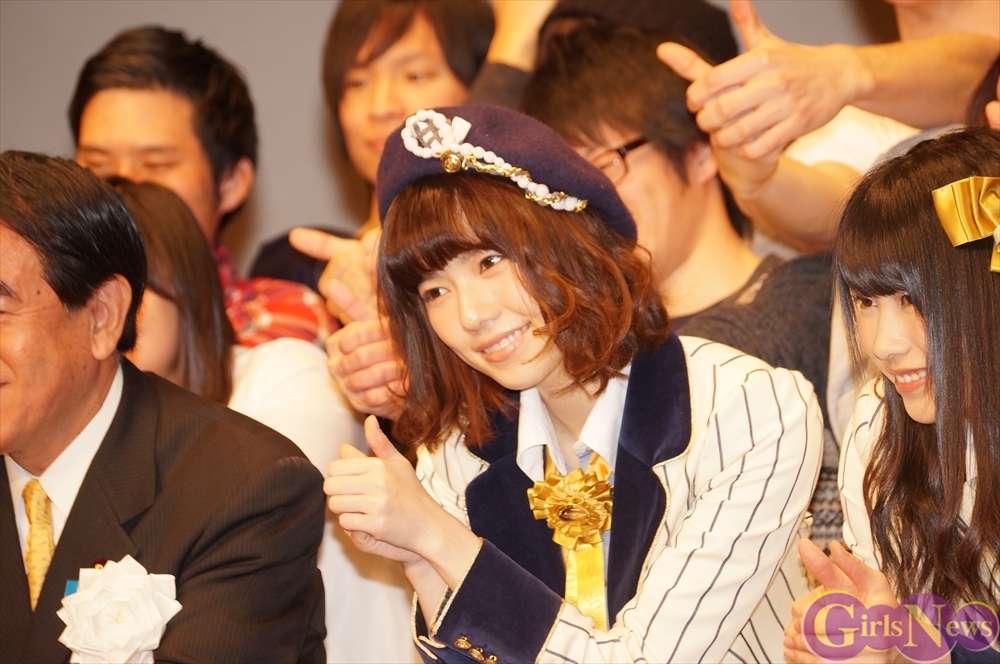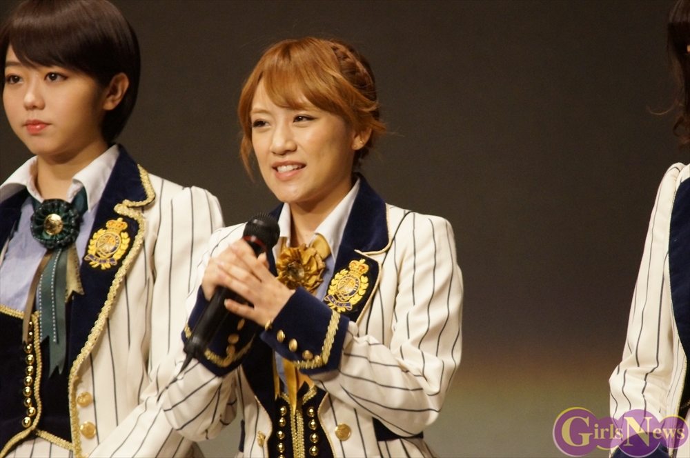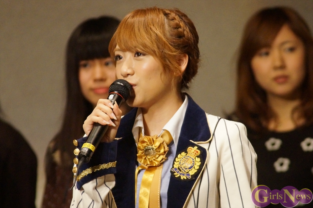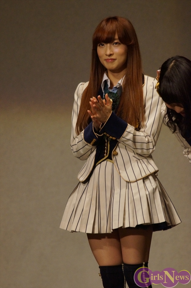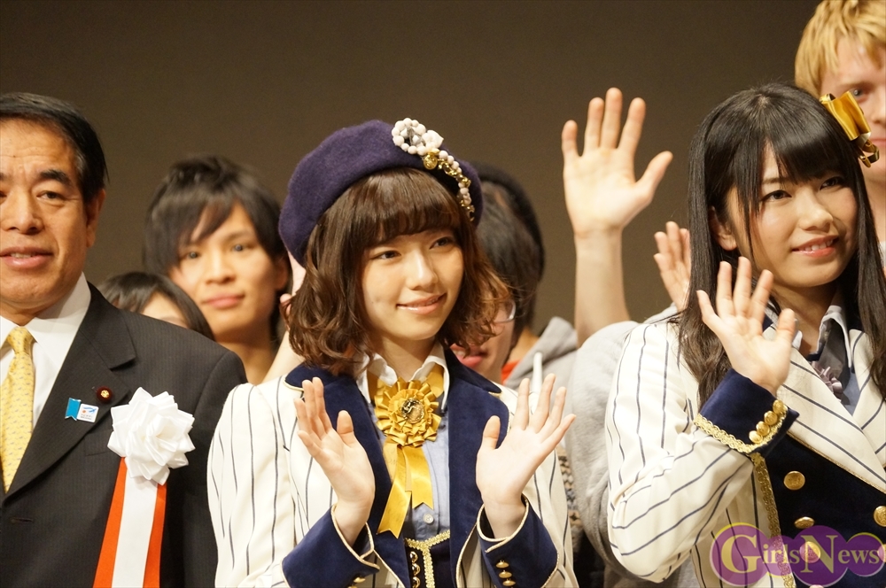 下村文部科学大臣の紹介を受け、登場したAKB48の高橋みなみさんは「本日はトビタテ!留学JAPANというチャレンジ精神いっぱいのキャンペーンにお呼びいただきありがとうございます。私たちなりに応援できればなと思っていますのでよろしくお願いします。」と挨拶。