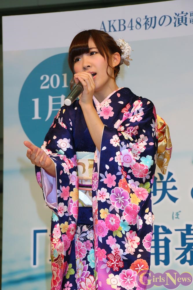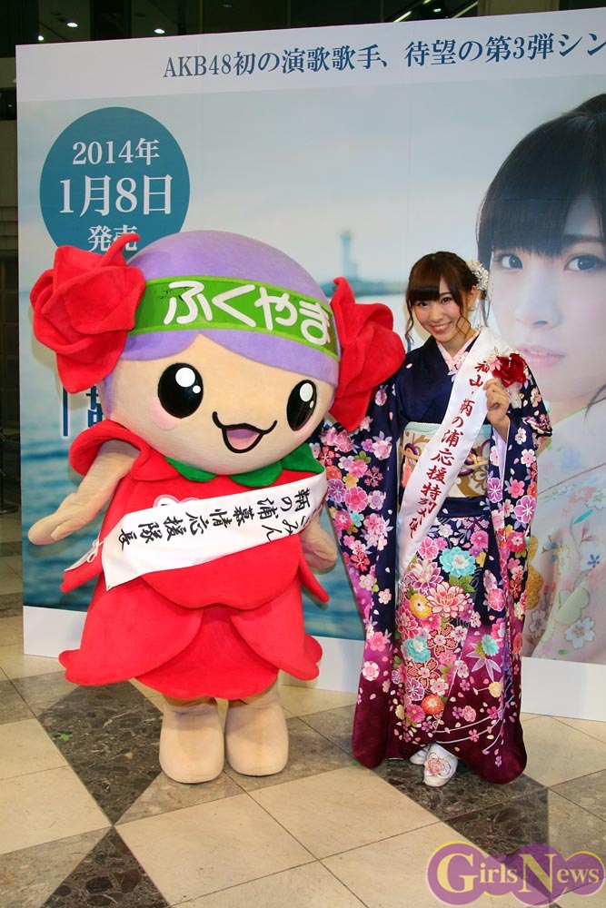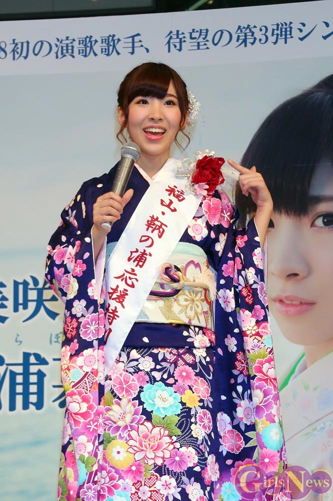 1月7日、AKB48のメンバーで演歌歌手の岩佐美咲さんの新曲『鞆の浦慕情(とものうらぼじょう)』(徳間ジャパンコミュニケーションズ)の発売を記念したイベントが、池袋サンシャインシティ噴水広場で行われた。