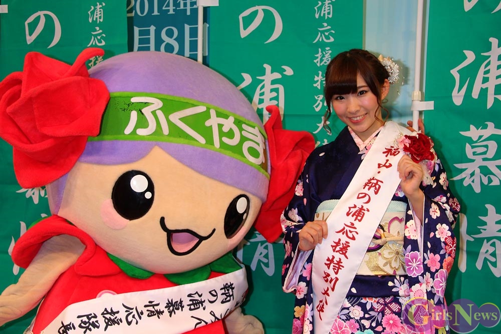 曲の舞台となった広島県福山市から『鞆の浦慕情』を応援しようとマスコットキャラクター・ローラちゃんがステージに登場し、『恋するフォーチュンクッキー』の演歌バージョンを歌う岩佐美咲さんを踊って盛り上げた。さらに、福山市から“応援特別大使”の任命を受けてタスキを受け取った岩佐美咲さんは、「鞆の浦の良い所をたくさんアピールしていきたい。」と意気込みを語った。