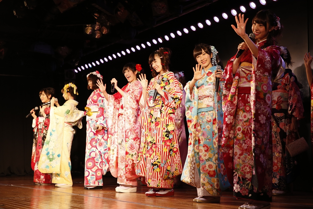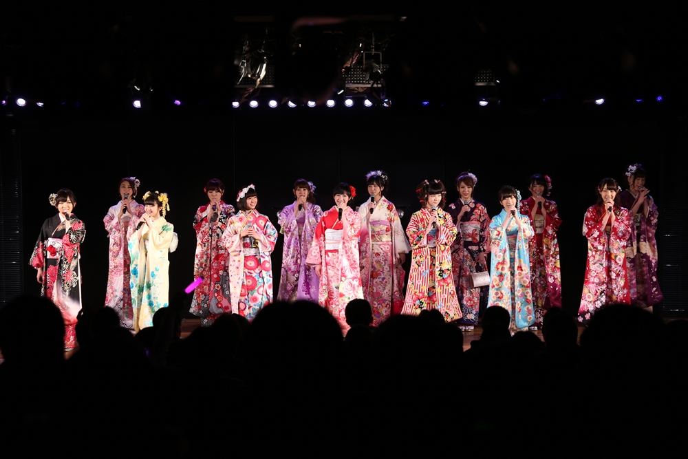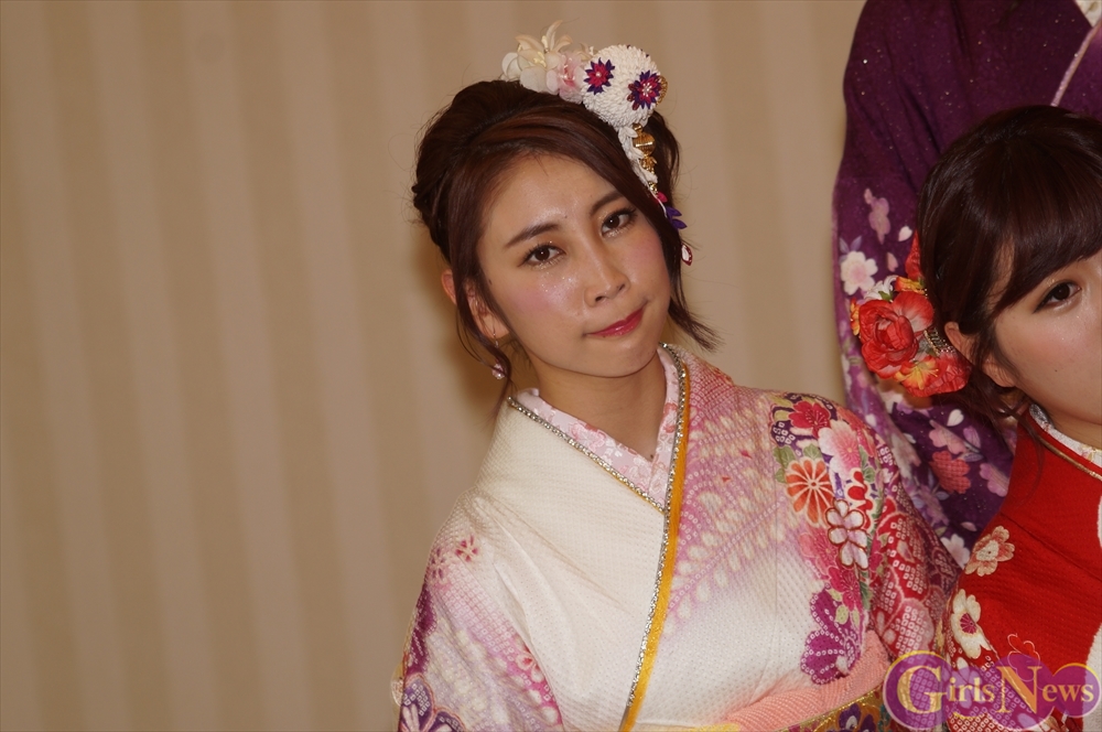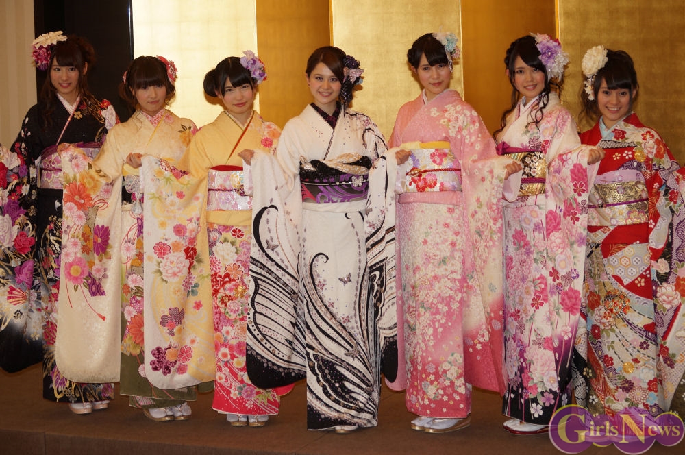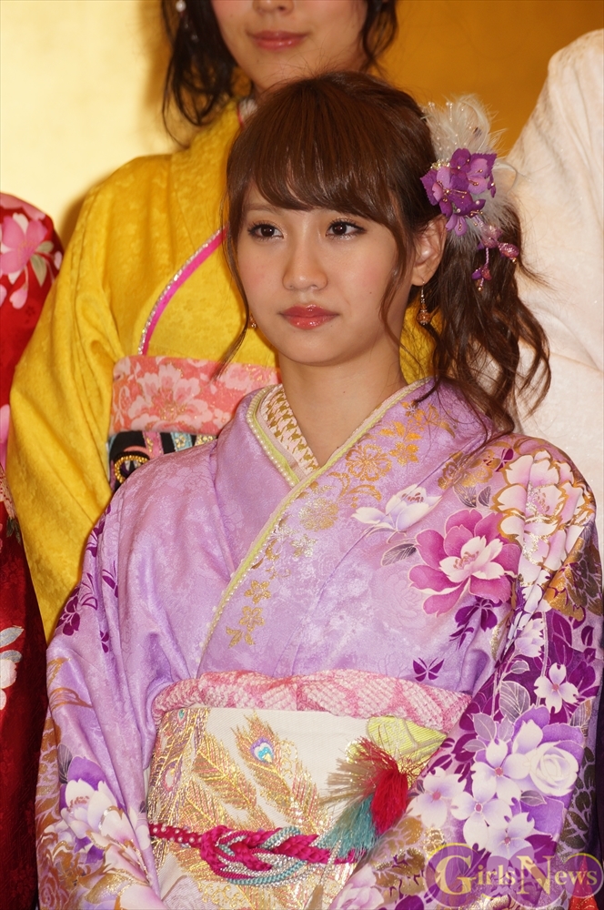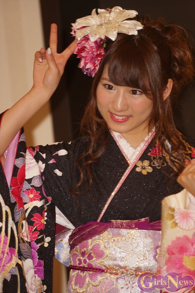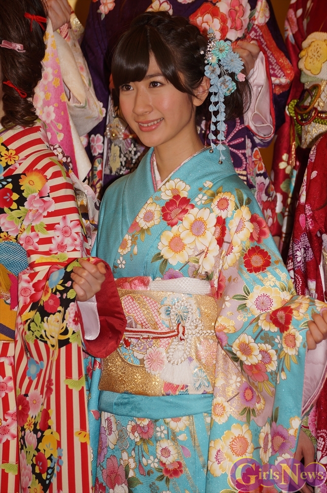 今年のAKB48グループ成人式は、AKB48から渡辺麻友さん・島崎遥香さんら13名、SKE48から木下有希子さんら7名、NMB48から山本彩さん・渡辺美優紀さんら6名の過去最多となる総勢26名で行われ、艶やかな着物姿を披露した。