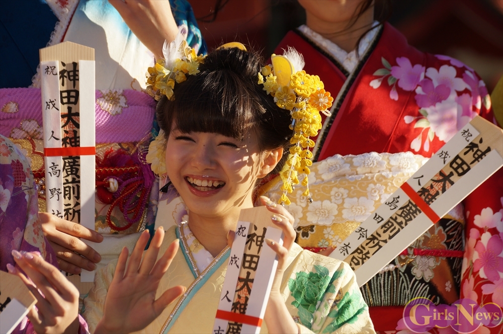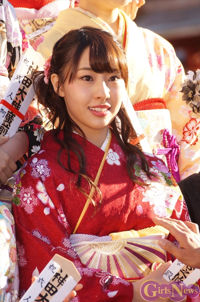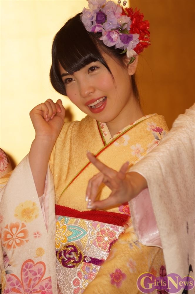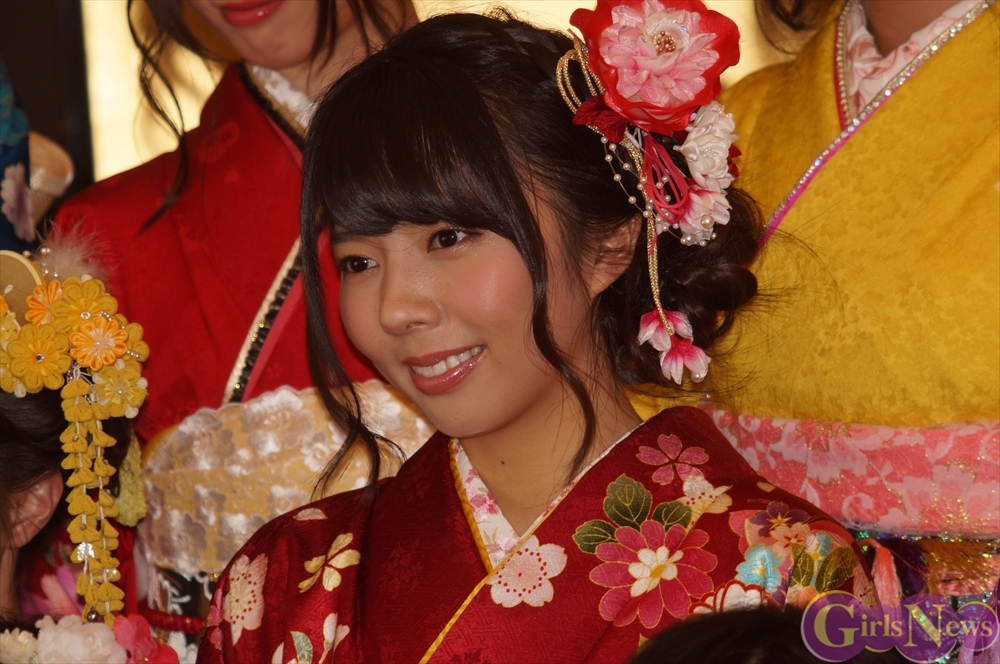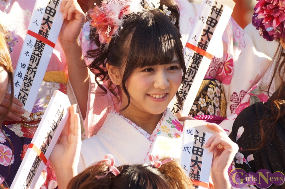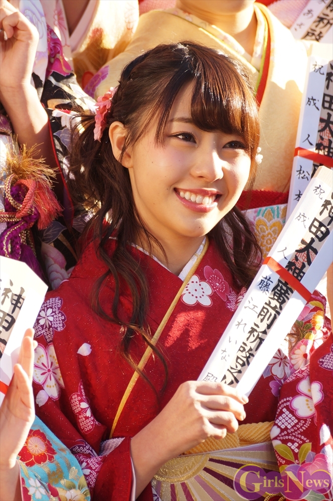 SKE48の高木由麻奈さんは「二十歳になって成人式を迎えて、周りの人から頼られる人と思われるようにしたいと思います。」