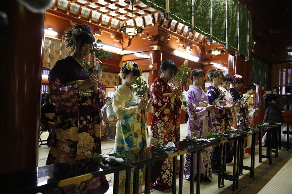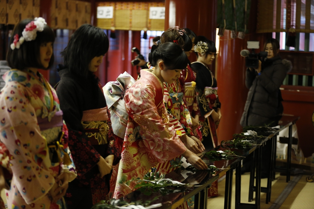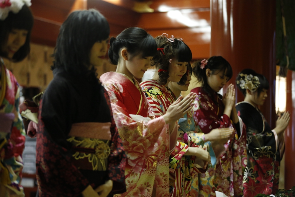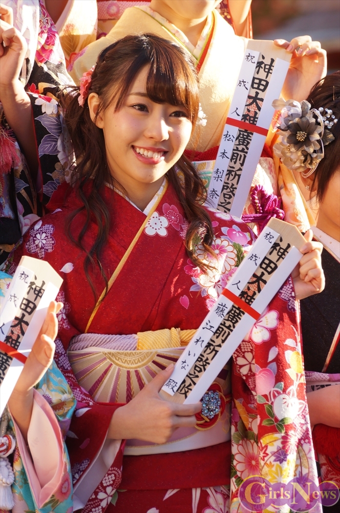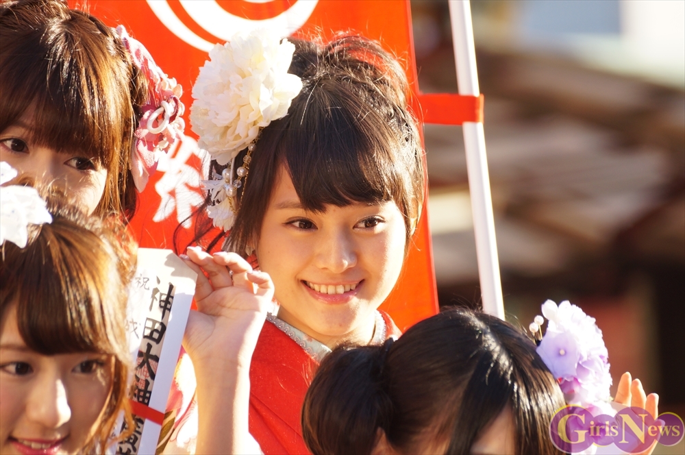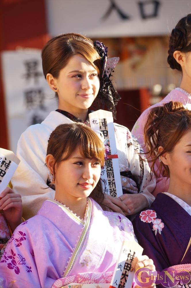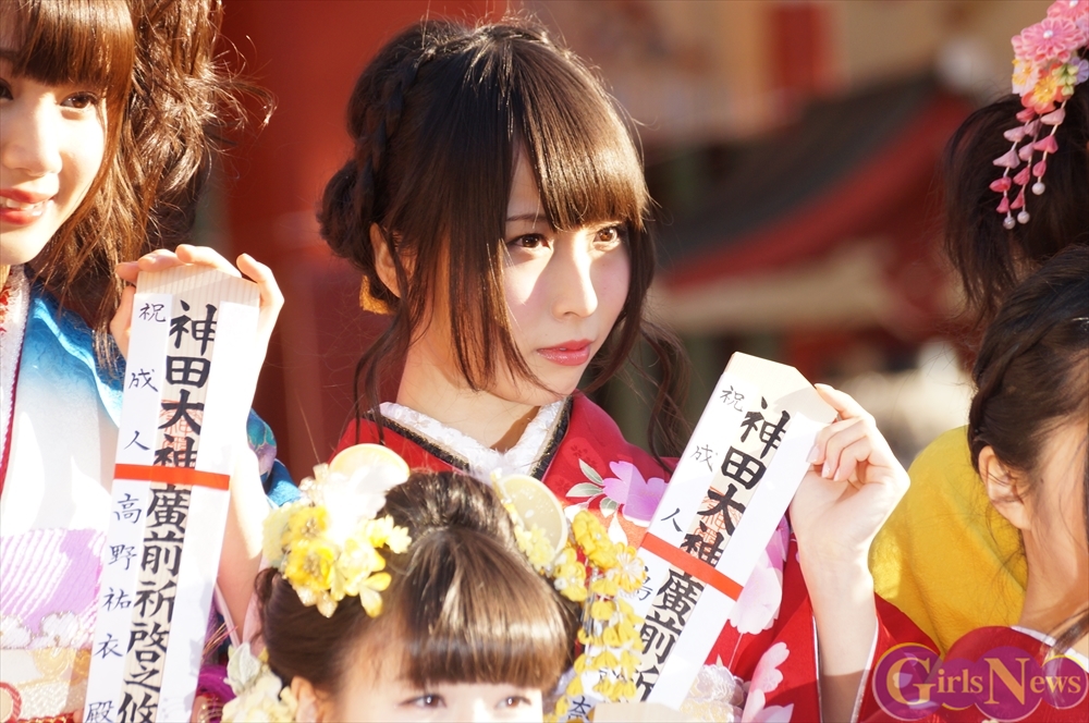 早朝、着物姿で神田明神に参拝に訪れたAKB48グループのメンバーは社殿内神殿にて神主様からご祈祷を受け、その後、社殿前で記念撮影。多数のファンに見守られる中、それぞれの個性溢れる晴れ着姿を披露した。