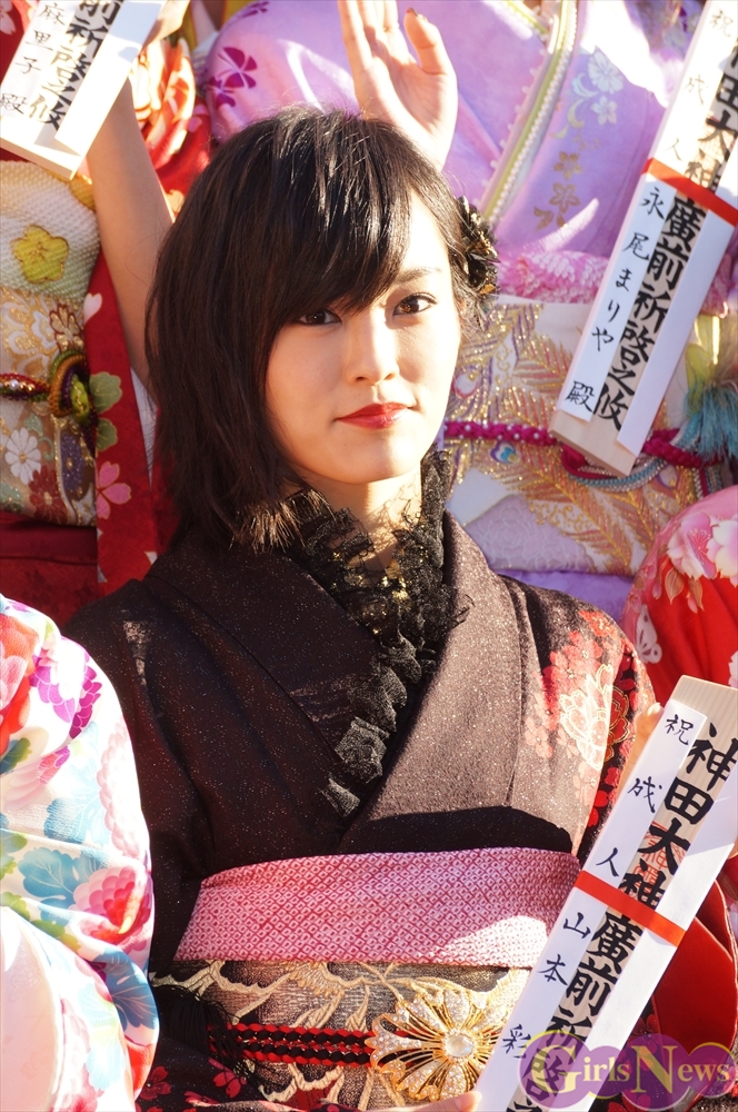 AKB48の永尾まりやさんは「私は大雑把にいいオンナになることです。今年一年ではなく、これから二十歳としてこれからずっと改めて行きたいと思います。」