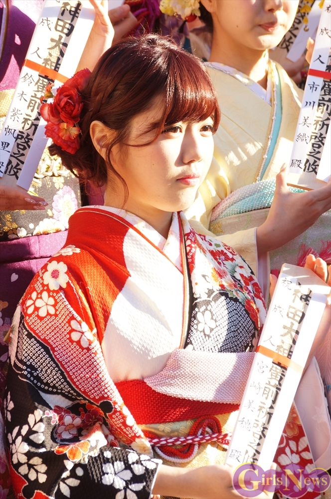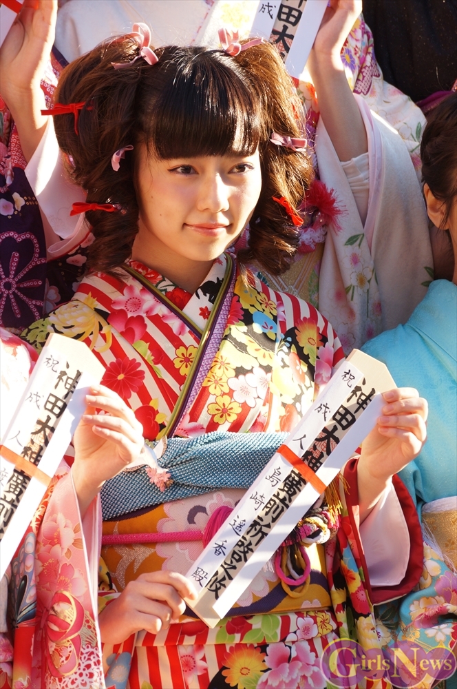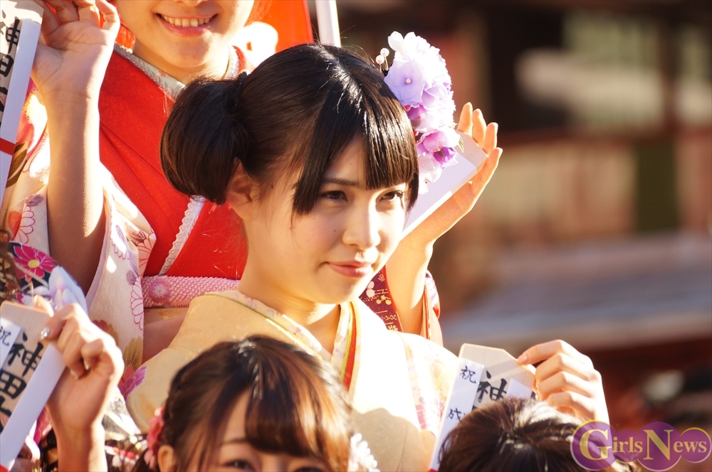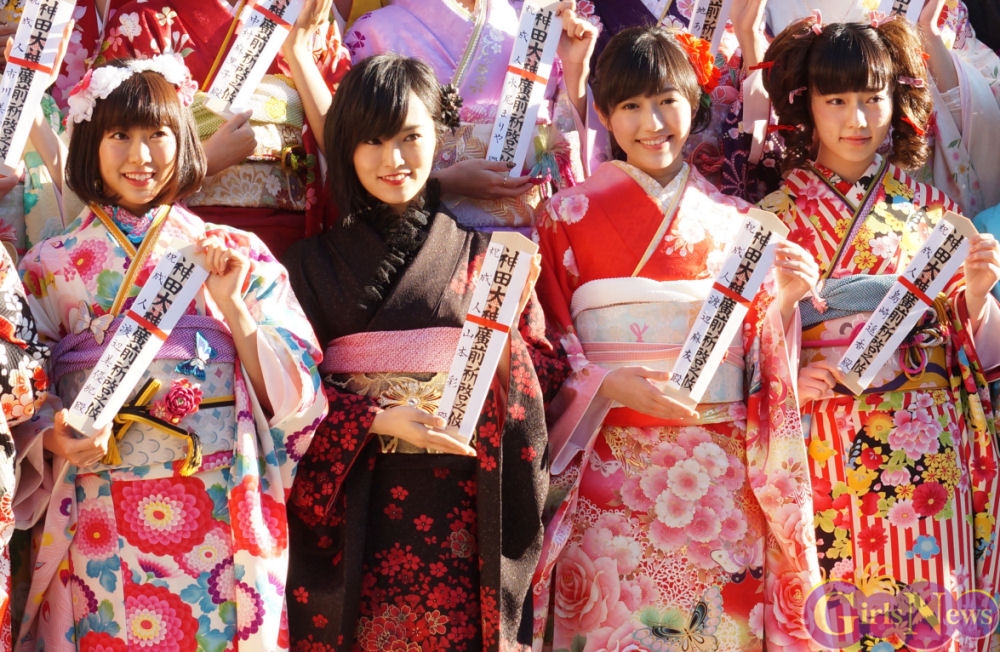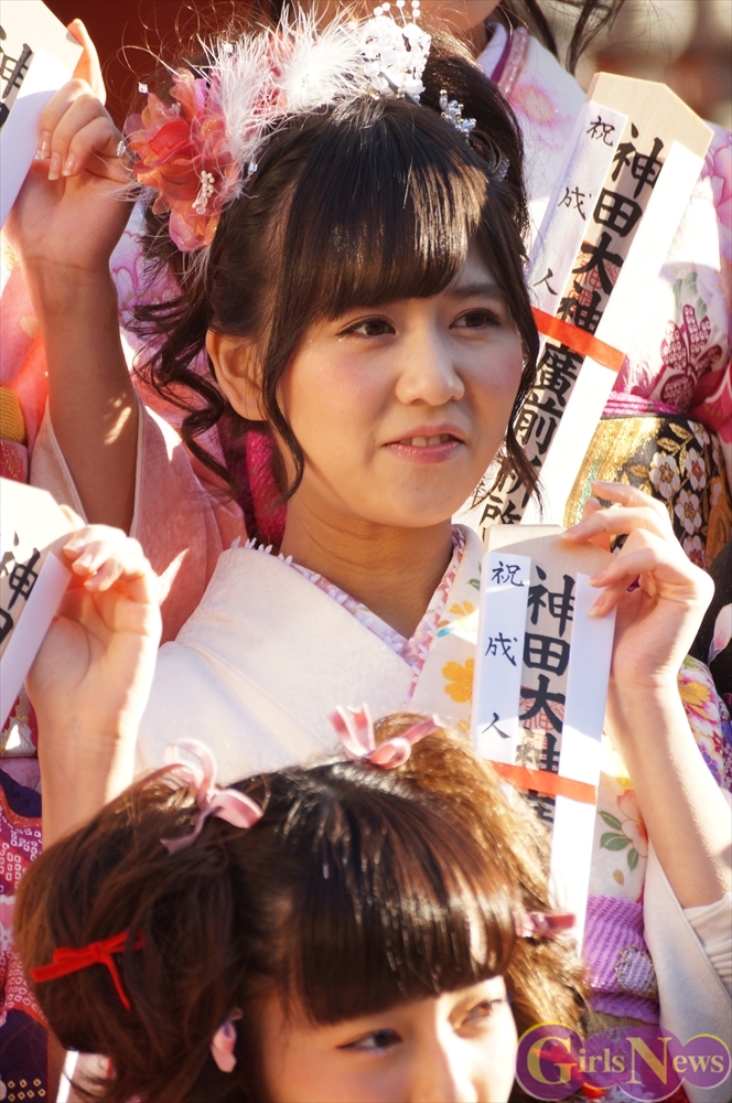 1月13日、平成26年AKB48グループ成人式が東京・神田明神で行われ、早朝にも関わらずメンバーの振袖姿をひと目見ようとファン約1000人が駆けつけた。