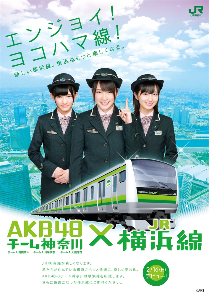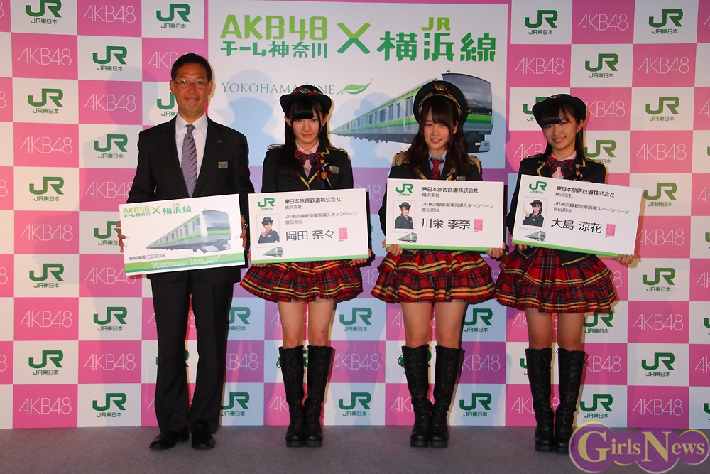 1月29日、JR東日本横浜支社で「AKB48チーム神奈川×JR横浜線 新型車両導入キャンペーン」の記者発表会が行われ、神奈川県出身のAKB48のメンバーである川栄李奈さん、大島涼花さん、岡田奈々さんが横浜線の宣伝担当に就任した。