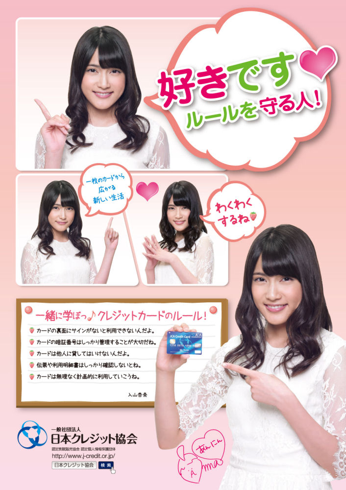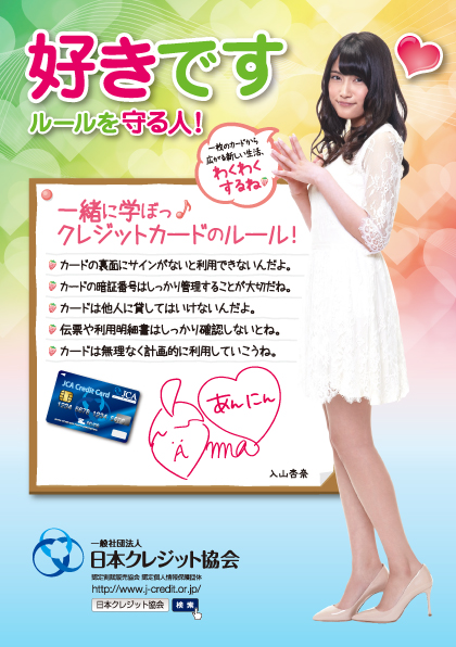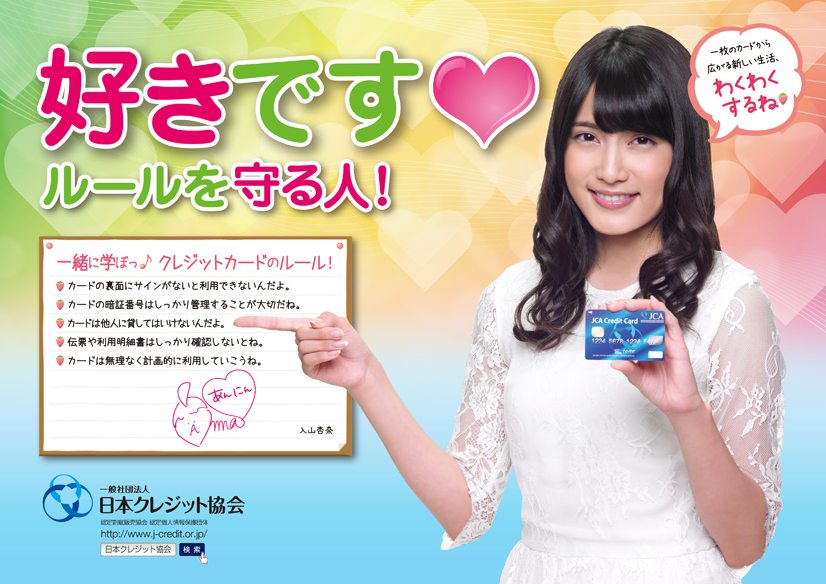 4月1日より、AKB48の入山杏奈さんが一般社団法人日本クレジット協会のキャンペーンモデルに起用された。
