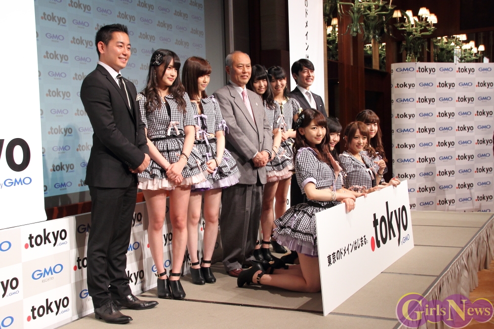 発表会には東京都知事 舛添要一氏と「.tokyo」応援団としてAKB48の入山杏奈・柏木由紀・小嶋陽菜・小嶋真子・島崎遥香・高橋みなみ・横山由依・渡辺麻友が登壇した。