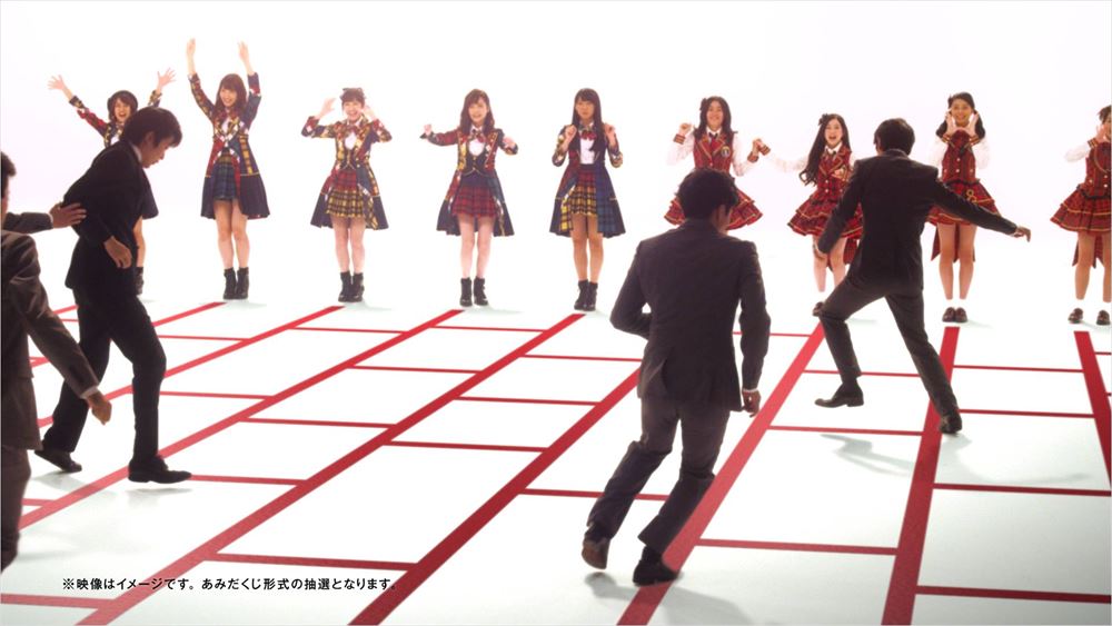 今回のCMの舞台は巨大なあみだくじの線上。サラリーマン役の男性陣が、ゴールで待つAKB48メンバーを目指し、巨大なあみだくじの線上を走る。どのメンバーにたどり着くかは神のみぞ知る。実際に線上を細かく曲がりながら全力で走るのはかなり体力を消耗するようで、男性陣はみんな汗だく。反対側で待つメンバーたちも線を逆にたどってみるなどあみだくじに興味津々。また、あみだくじにまつわる思い出を聞いてみると柏木さんからは意外な答えが。「子供のころ、食べたいものをあみだくじで選ぶっていう遊びをしていました、一人っ子なのでひとりで」。