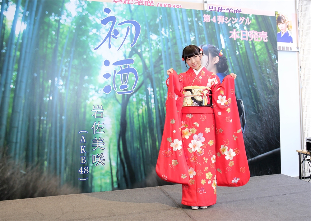 4月29日、AKB48初の演歌歌手としてソロデューして今年で4年目を迎えた岩佐美咲が、第4弾シングル「初酒」を発売したのを記念して、東京・渋谷区のマルイ渋谷・店頭プラザの特設ステージで新曲発売記念イベントを開いた。