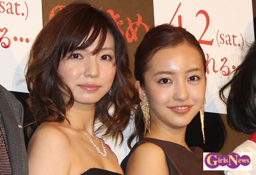 板野友美さん初主演の映画『のぞきめ』の完成披露上映会が10日、新宿バルト9にて行われ、「ホラー映画は苦手です」という板野さんはじめ、入来茉里さんらキャストが登壇した。舞台挨拶の途中、劇中に登場する化け物“のぞきめ”(集合写真中央)がサプライズ登場。板野さん、入来さんとも驚きと恐怖の表情に。板野さんは少しムッとしながら「そのサプライズいらないです!」と話していた。