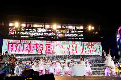 歳になったまゆゆをお祝い。まゆゆは「去年と 2 年連続で、コンサートでみなさんにおめでとうを直接言ってもらえて幸せです。22 歳の渡辺麻友もよろしくお願いします」と笑顔で応えた。