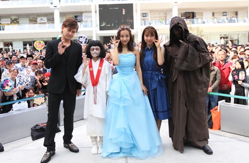 この日のステージで、開演と同時に本人が出てくると思いきや、最初にステージに現れたのはマジシャン・テツヲさん。タイトル『HIDE & SEEK』の意味“かくれんぼ”にかけて、本人を “探す”マジックを披露した。…が、“ともち?ん!”という観客の掛け声でステージに置かれた箱から出てきたのは『HIDE & SEEK』のミュージックビデオに登場しているオオカミ男。続いて、映画『のぞきめ』に出演している化け物『のぞきめ』が登場した。