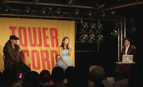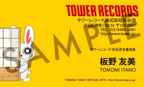 最後にタワーレコード渋谷店の名誉店長として本人がイベント参加者全員にオリジナルの名刺をプレゼント。この名刺には本人作のキャラクター“Tomクン”と『HIDE & SEEK』が主題歌の本人初主演映画『のぞきめ』がコラボしたイラストが描かれている。