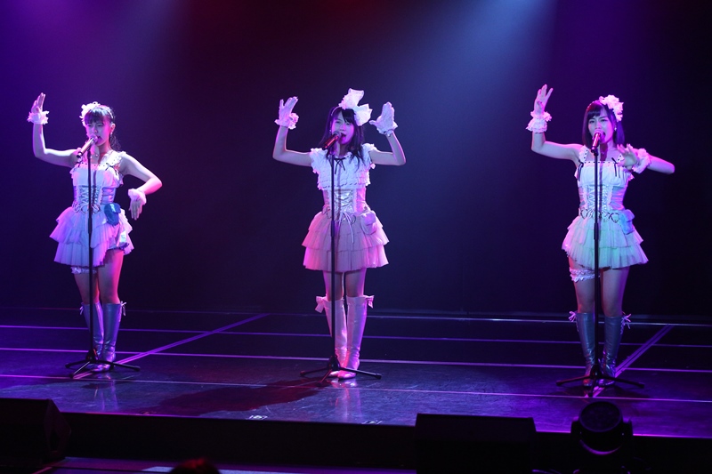 そして本編がスタート。1 曲目は『RESET』。出演メンバー16人全員がステージに登場し、気合い十分なパフォーマンスでオープニングを飾り、『洗濯物たち』『彼女になれますか?』『ウッホウッホホ』の3曲を披露。