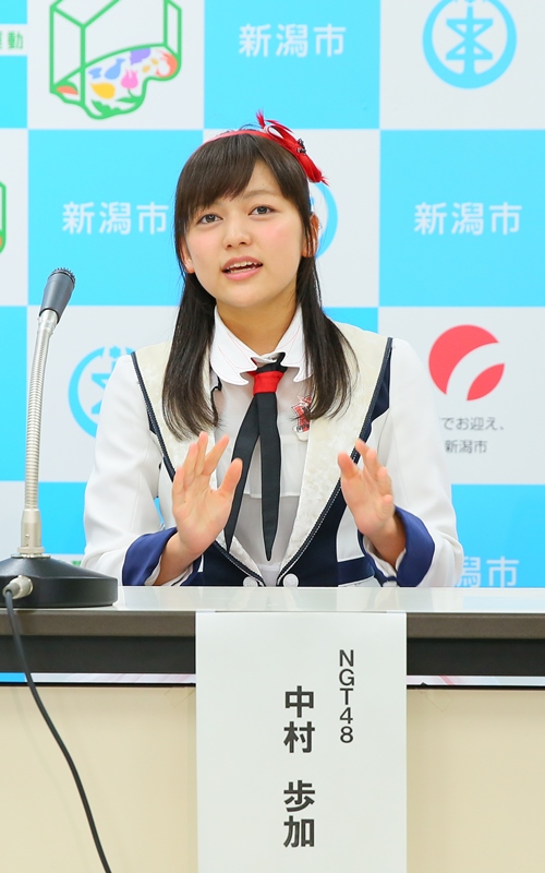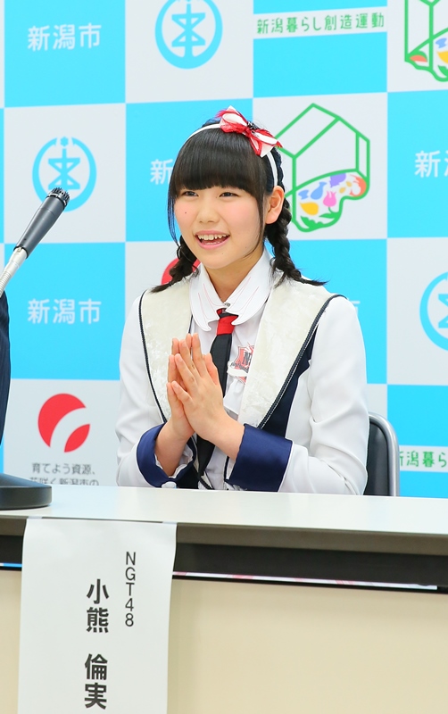 NGT48の小熊倫実さん、中村歩加さん、水澤彩佳さん、そして同劇場・今村悦朗支配人が、今月18日のAKB48選抜総選挙の新潟市開催にあたり、6日、新潟市役所を表敬訪問。記者会見で小熊さんは新潟開催にあたり、「小学生の頃から家族や友達と AKB48 グループを応援していて、総選挙もテレビで見ていたので、そのステージに立たせていただけるのが本当に嬉しいです。ドキドキしています」と喜びを表した。