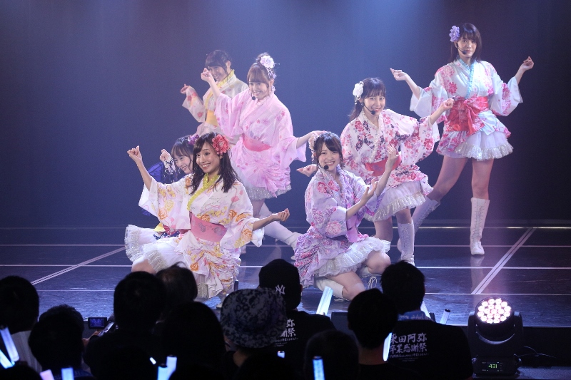 アンコールでは、場内が柴田さんのイメージカラーである水色と白の2色のスティクライトで照らされ、“阿弥ちゃん”コールにつつまれた。再び幕が開くと、『ロープの友情』『火曜日の夜、水曜日の朝』を力強 く披露。その後、2010年にSKE48第4期生オーディションに合格してから、SKE48メンバーとして奮闘してきた柴田さんの6年間の軌跡映像が流されると、劇場は卒業モードに一変。