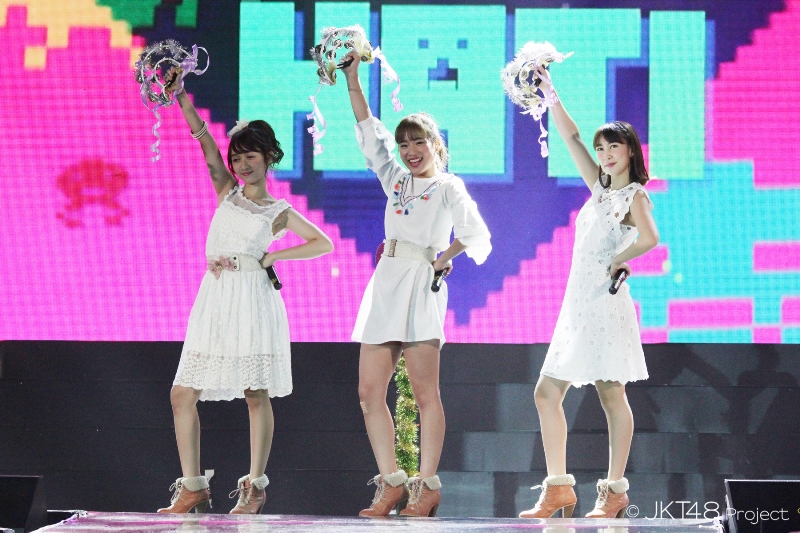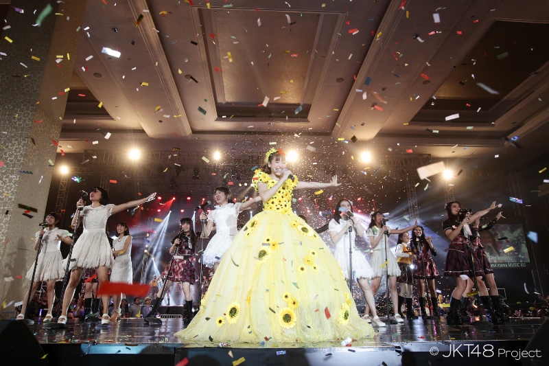中盤では、近野莉菜さんによるインドネシアの大衆音楽「ダンドゥット」に続き、メンバーによるJKT48バンドの演奏披露。ユニットやダンスチームも盛り上がりを見せ『前しか向かねえ』『未来の扉』で5周年の思いを締めた。