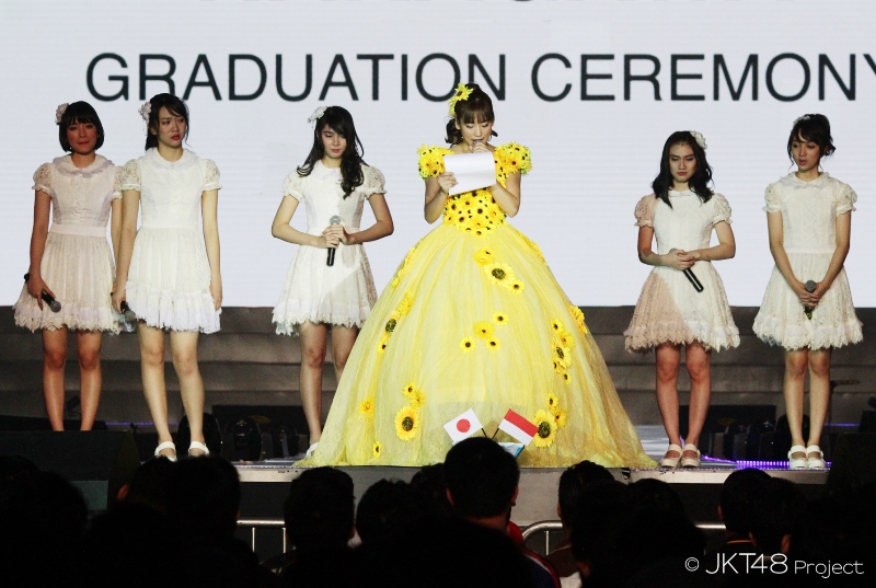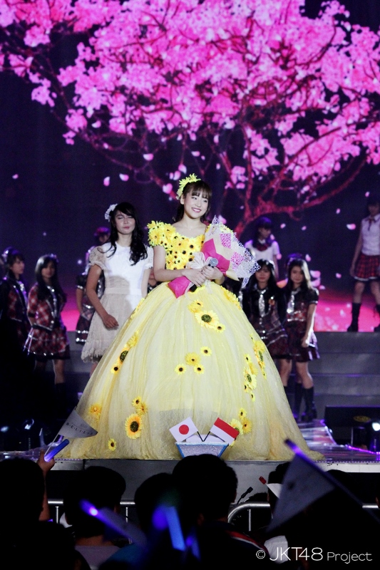 JKT48・仲川遥香さんの卒業セレモニーが17日、バンドンのTrans Luxury Convention Centerで開催された同グループのデビュー5周年記念コンサートで行われた。仲川さんは、「自分で来ようと決めて来た場所で、そして一番大好きなメンバーと卒業セレモニーができたこと、本当に嬉しく思います。すごく綺麗な、ひまわりをモチーフに作ってもらったドレスを着てみんなに見送ってもらえました。10年間諦めずにやってきてよかった!」と感激の表情を見せた。