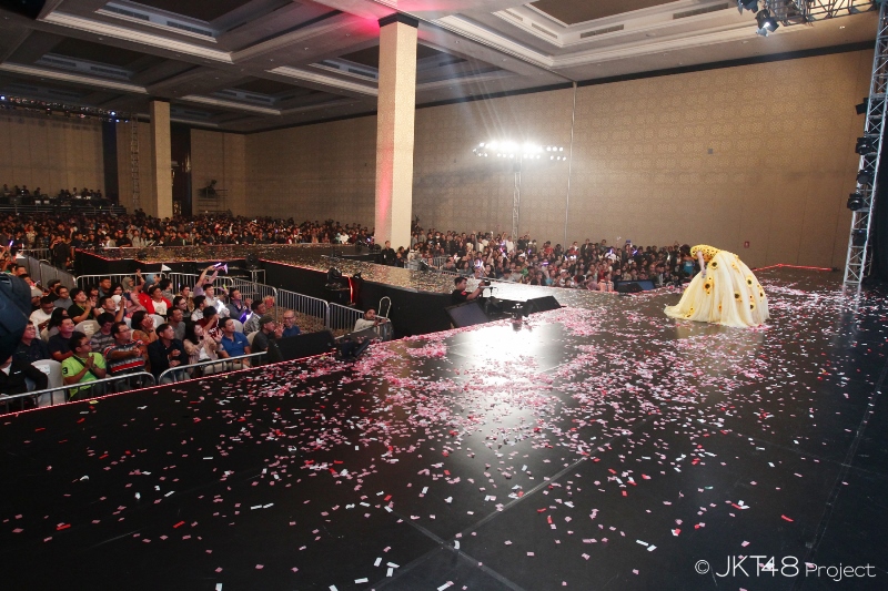 最後のMCで、仲川さんから感謝の手紙が読まれ、卒業の定番曲『桜の花びらたち』に。メンバーもファンも涙を浮かべながら、JKT48 の功労者・ハルカがグループを去ることを受け入れなければならない辛さと、温かく送り出そうという思いが会場をつつんだ。