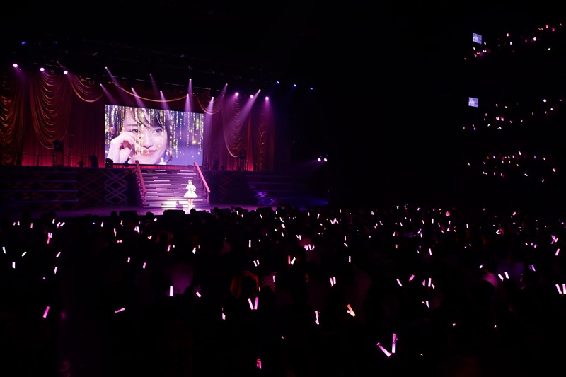 続く楽曲では、その尊敬してやまない先輩たちと、夢の共演。『制服レジスタンス』では板野友美さんと、『Bird』では高橋みなみさんと、『黒い天使』では前田敦子さんと、それぞれかつてのライブ映像とコラボパフォーマンスを、映像の中の先輩たちが着ているオリジナル衣装に身をつつんで繰り広げた。
