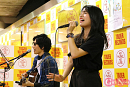 イベントは、まずコバソロさんが『これくしょん』と同時発売のオリジナルアルバム『KOBASOLO』から軽快なメロディの『 全力ヒーロー』で会場を盛り上げた。続いて登場した竹内さんは緊張を押さえながら、『これくしょん』の収録曲から、『君に届け』と『3 月 9 日』を披露した。竹内さんの優しい歌声を観客の手拍子が暖かく迎え、歌い終えた竹内さんは「ふーっ!」と安堵のため息を深くついた。「実はダイエットで3日ぐらい断食して3キロ減ったんですが、体力も落ちてしまって反省してます。さっきサンドイッチを食べたんですが、息を吐ききってパワーを使い果たしました」と竹内さんは安心を取り戻して笑顔を見せていた。