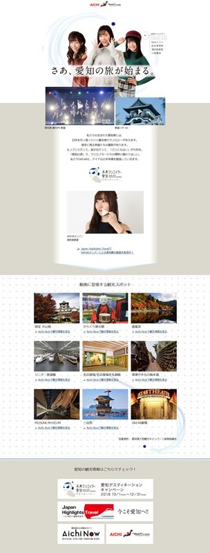 SKE48の松井珠理奈さん、須田亜香里さん、小畑優奈さんが、愛知県の平成30年度の観光PRの新作動画・ポスターに登場。ポスターはJR、私鉄などの駅での掲出、観光イベントでの掲出、それにより愛知の観光の魅力を発信していく。