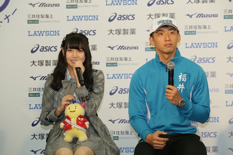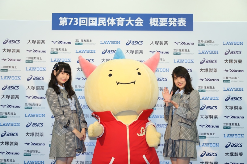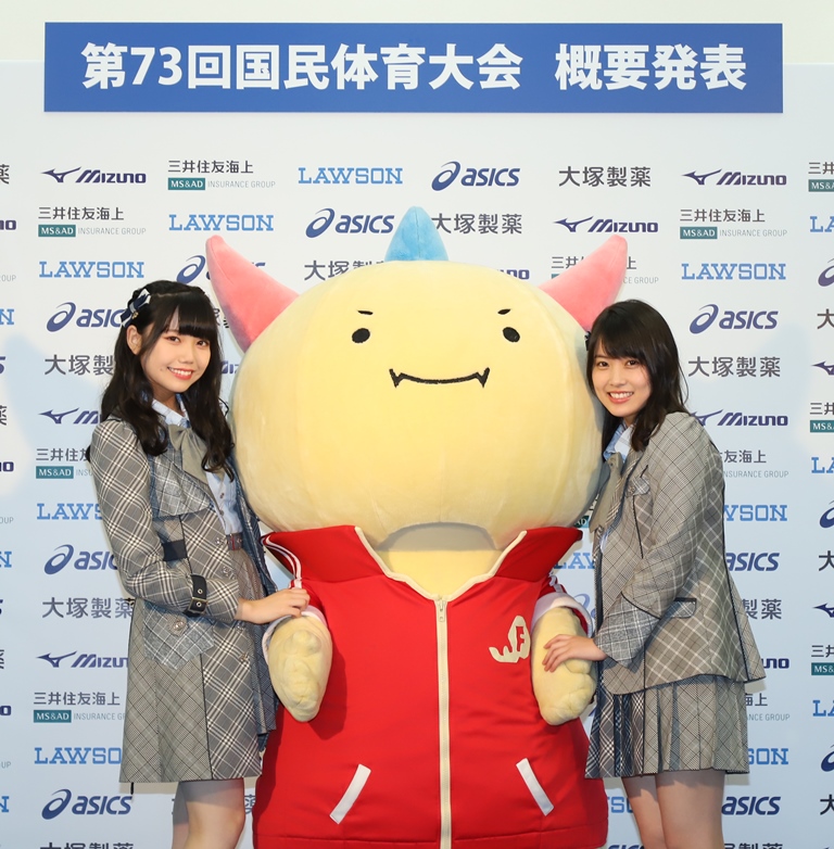 AKB48チーム 8の長久玲奈さん(福井県代表)と岡部麟さん(茨城県代表)が20日、第73回国民体育大会『福井しあわせ元気国体』の記者発表に登壇した。