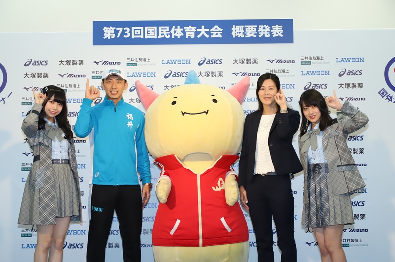今月29日から10月9日まで福井県で開催される同・国体。この日の記者発表では、「福井しあわせ元気国体」の開催概要を発表した後、スペシャルゲストによるトークショーを開催。第31回オリンピック競技大会(2016年・リオデジャネイロ)競泳女子200 メートル平泳ぎで金メダルを獲得した金藤理絵さん、開催地・福井県代表として今大会のフェンシング競技成年男子に出場する徳南堅太選手、さらに、昨年から国体応援サイト「#国体 fan」に登場するAKB48 チーム 8 から、福井県代表・長さんと来年の国体開催地である茨城県代表・岡部さんも登場、国体の魅力などをアピールした。