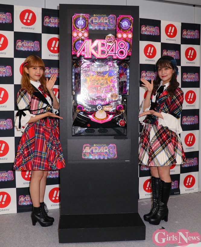 12月17日より全国のパチンコホールで導入予定の『ぱちんこ AKB48-3 誇りの丘』記者発表会が1日、秋葉原のKYORAKUショールームで開催され、AKB48メンバーの加藤玲奈さんと小嶋真子さんがゲストとして出席した。