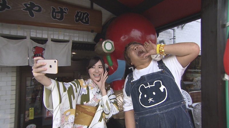 日本三名泉で有名な下呂温泉は、ツルツルスベスベした肌触りから別名「美人の湯」とも呼ばれる名湯。その下呂で珠理奈さんは着物を着て街歩き。