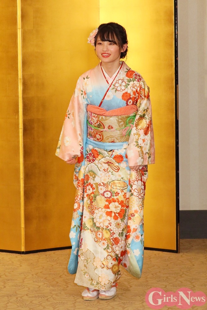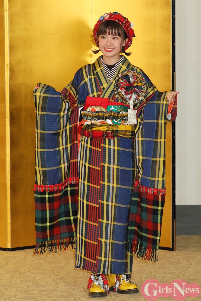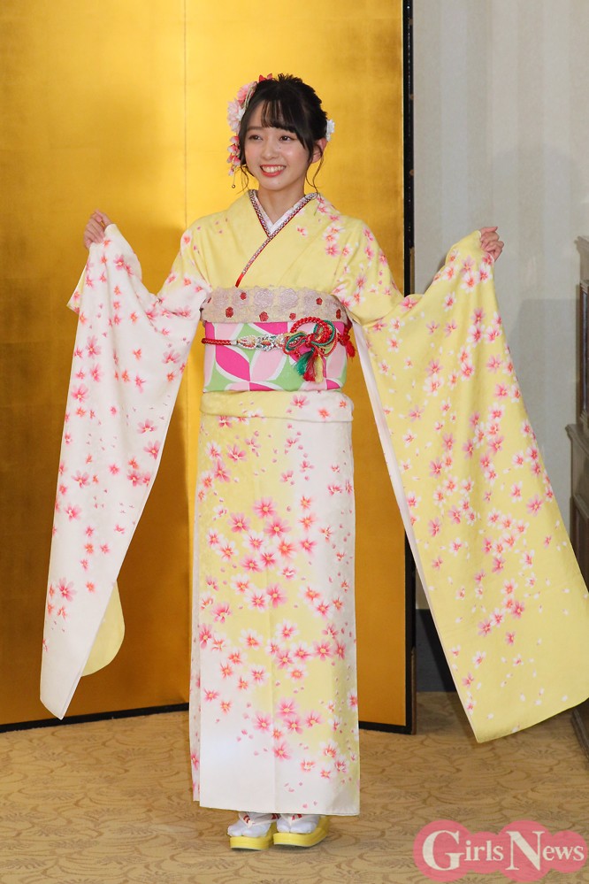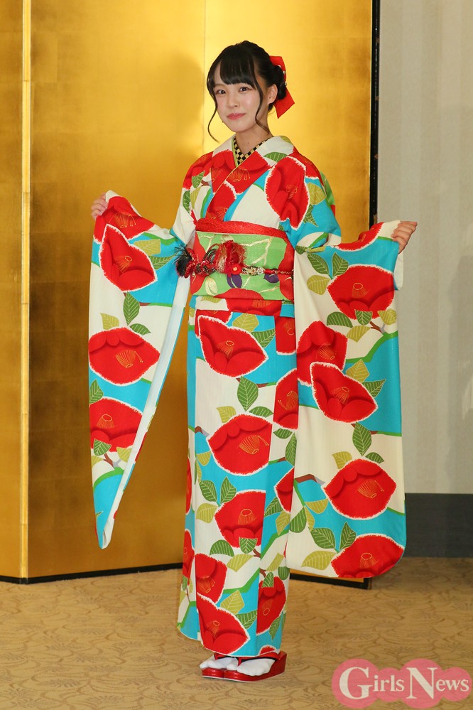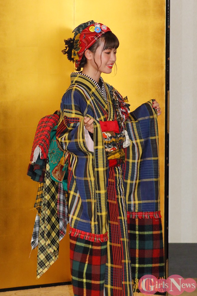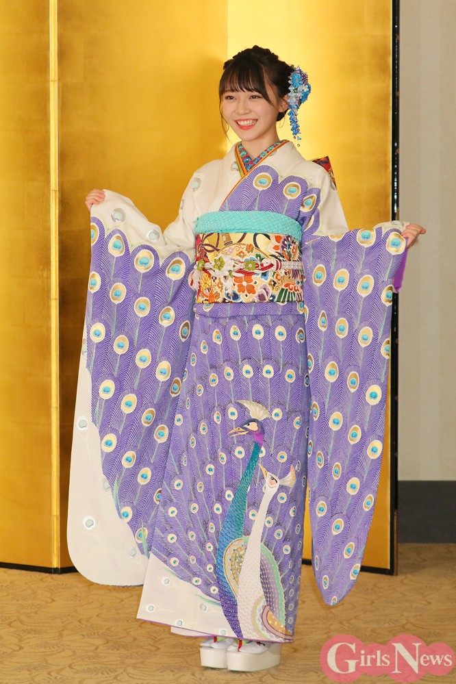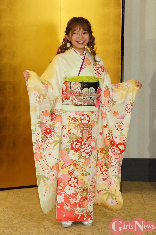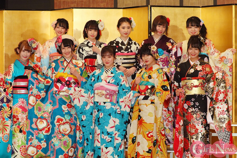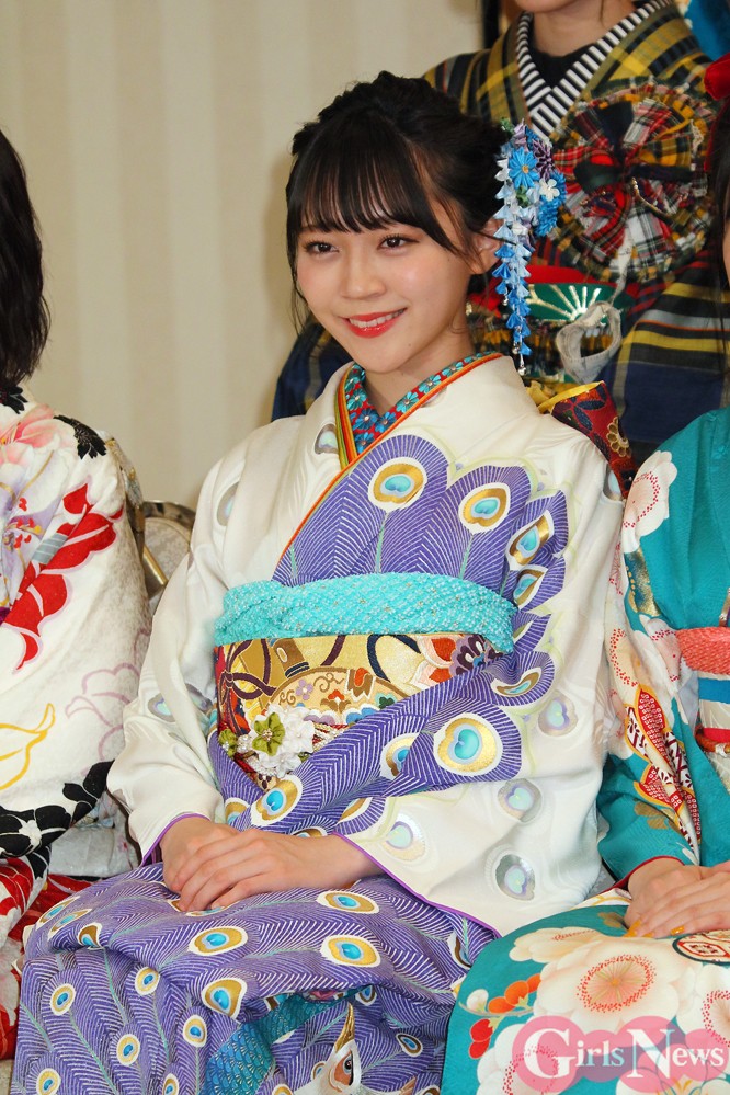 HKT48の外園葉月は、半年近くかかって姉と自作したという振り袖を披露。「費用は3000円くらい」と明かすと周囲からは「すごい!」と驚きの声が上がった。低予算ながら帯なども凝っていて、「帽子もお気に入りです」と照れながらも満足そうだった。