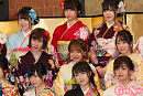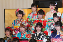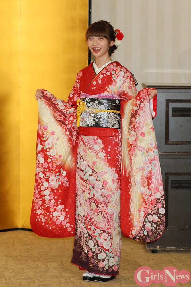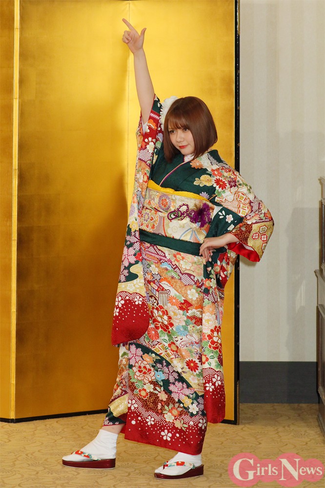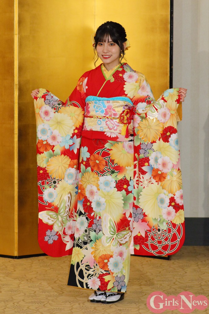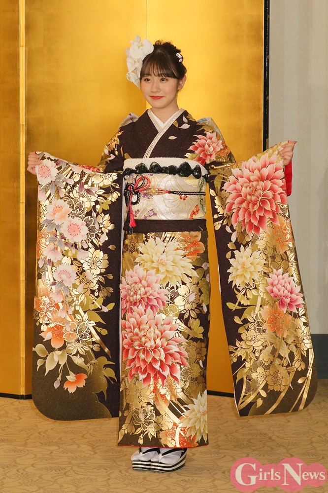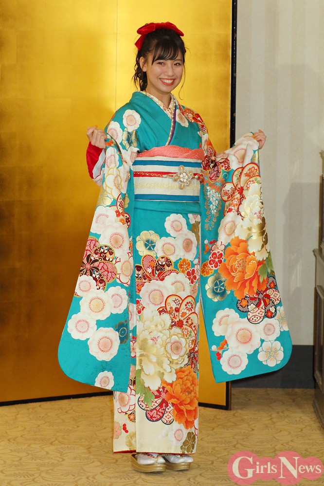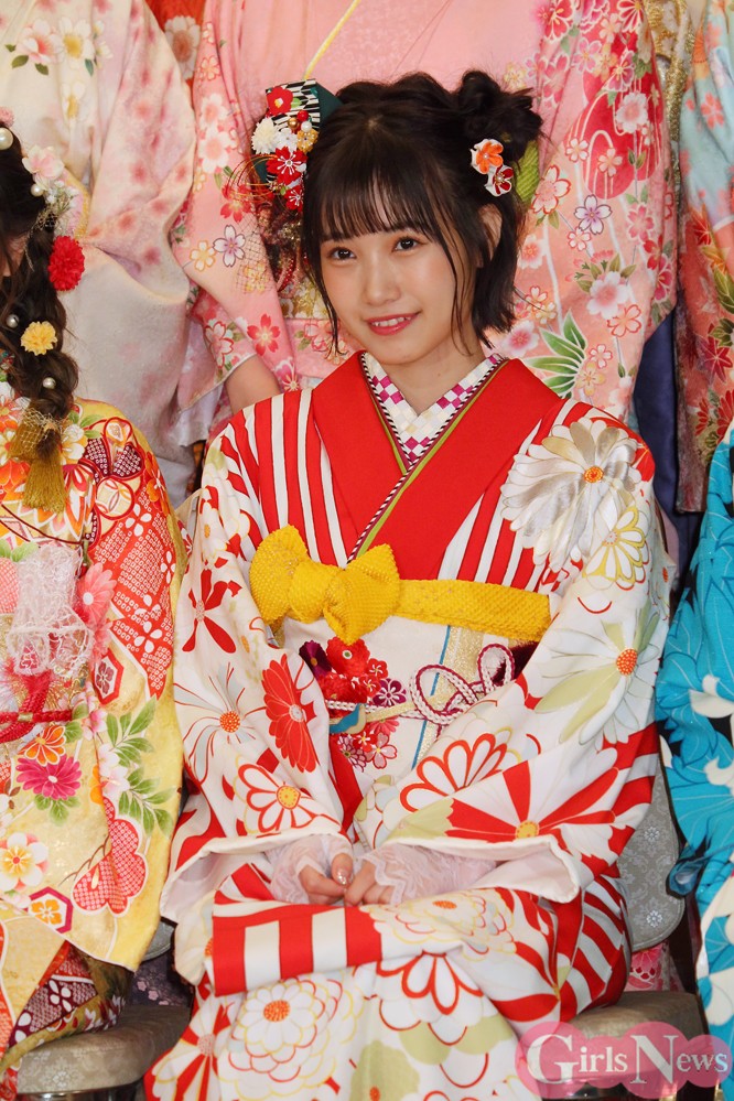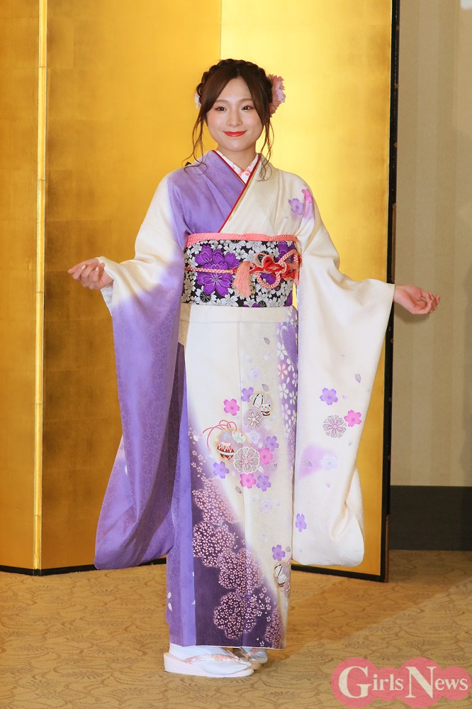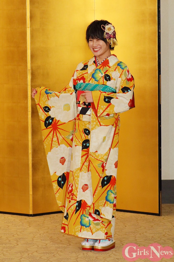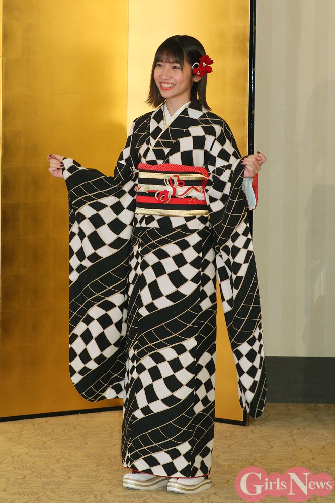 HKT48の外園葉月は、半年近くかかって姉と自作したという振り袖を披露。「費用は3000円くらい」と明かすと周囲からは「すごい!」と驚きの声が上がった。低予算ながら帯なども凝っていて、「帽子もお気に入りです」と照れながらも満足そうだった。
