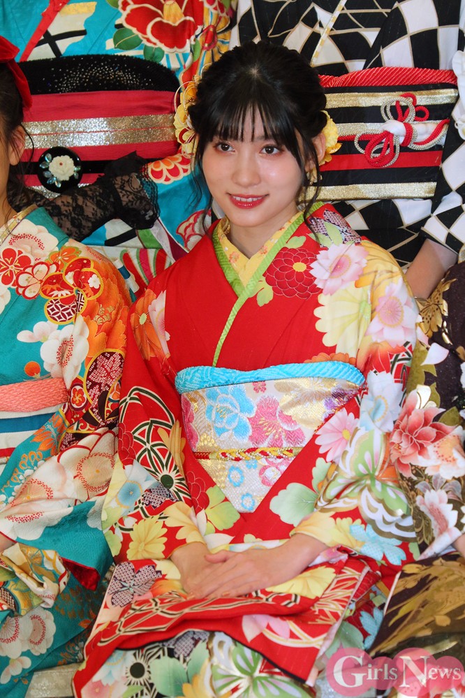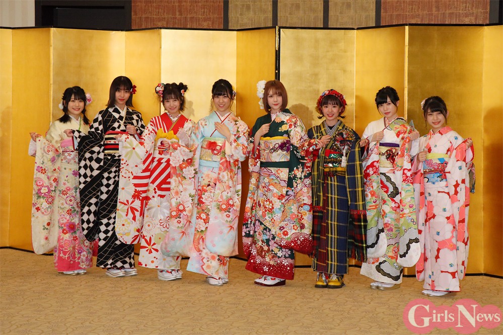神殿での祈祷と社殿前での記念撮影を終えたメンバーは室内でのフォトセッションと囲み取材に応じ、新成人の抱負を語った。